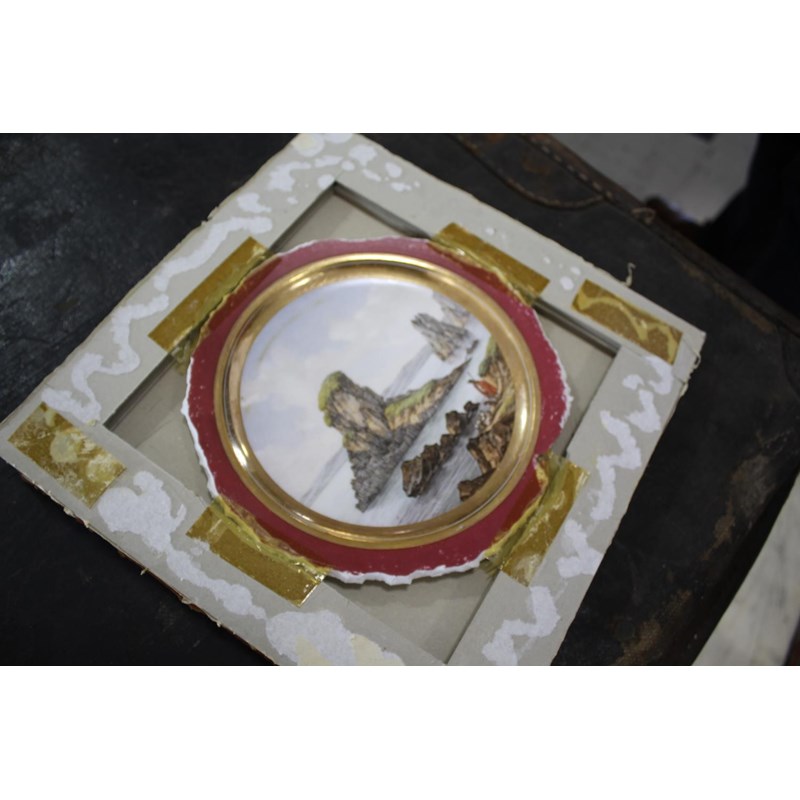*We have carefully removed the back of the frame which reveals that the plate rim has been roughly cut away at some point. See images for this lot.