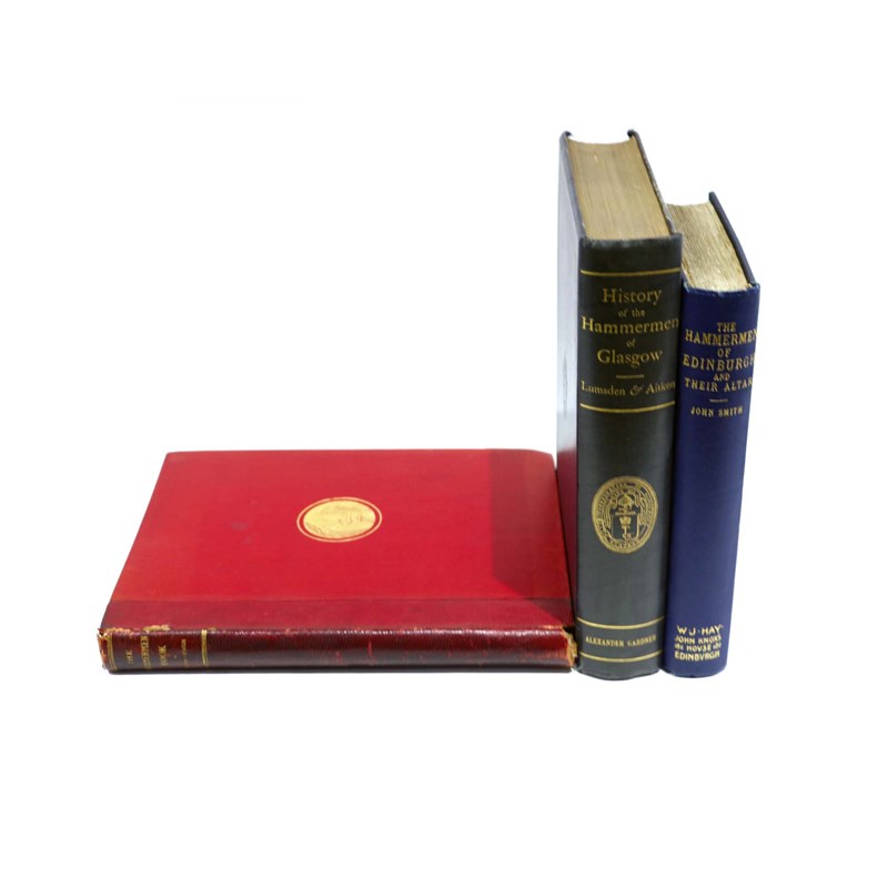 Hunt, Colin A: The Perth Hammermen Book (1518-1568), printed Perth 1889, Lumsden & Aitken: History of the Hammermen of Glasgow, 1912, Smith, J: The Hammerman of Edinburgh and their Altar 1906, Edinburgh Goldsmiths Minutes 1525-1700 (Scottish Record Society, 2006), and a quantity of other titles (Old Scottish Communion Plate, University, Civic & Judicial Maces of Scotland, 1893, Silver made in Scotland, Compendium of Scottish Silver Vols. I & II & The Edinburgh Goldsmiths, Robert Gordon 1665-1731 (lot)