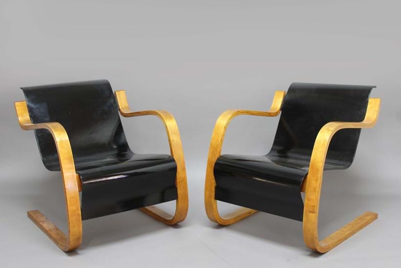 Lawrences’ selection of Decorative Arts and Furniture on October 10th was over 90% sold. Two collections of the ever-popular Moorcroft pottery realised a total of £6600, with the top price of £1060 paid for a small (9cm) salt glazed vase decorated with fish. A separate collection of studio pottery included works by David Leach, Alan Caiger-Smith, Rosemary Wren and Seth Cardew. The collection totalled £10,860, with £2000 paid for a celadon glazed teapot by the celebrated ceramicist Edmund de Waal. A pair of Wedgwood `Fairyland` lustre vases designed by Daisy Makeig-Jones exceeded hopes of £1500 to make £4250 and an Arts & Crafts silver bowl, made by George Lawrence Connell in 1912, commemorated a speech made by Queen Elizabeth in 1601. This made £500. The sale was led by an interesting selection of furniture, including an Aesthetic movement table, possibly designed by Stephen Webb for Collinson and Lock that made £1060 and a sinuously elegant pair of `Model 31` armchairs by the distinguished Finnish designer Alvar Aalto, circa 1931. Against hopes of £4000, the chairs made £6500.