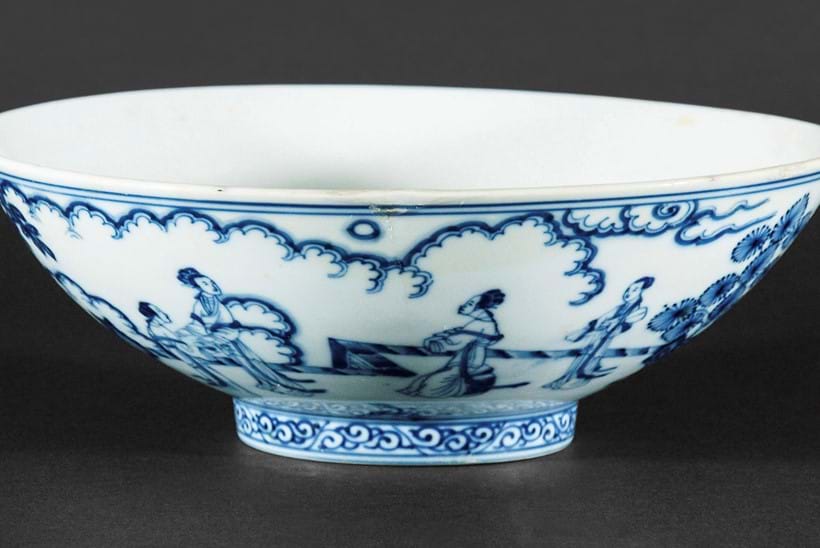 From the Oriental and Asian selection, there were strong prices for two sumptuous volumes of Chinese watercolours comprising flowers, birds, fish, insects and figures that made £4250 (66 images in total); a celadon jade mounted silver box from the Harvey-Kelly collection that made £3000; a group of nine jade items, including a near white jade pendant of a boy upon a fish, that made £4000; four porcelain plaques, possibly Republic period, each 26 x 39cm, that made £4750 and a Chinese bowl, Ming style, that led the section and took £10,600.