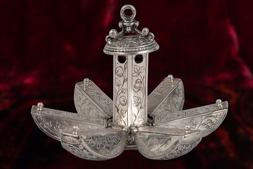 This perfect pomander was chosen to be Country Life’s `Pick of the Year` for 2020. Skilfully made, a Dutch or German pomander, c.1600-1630, was once carried to ward off airborne disease. “Its chilling significance in 2021 sadly needs no emphasis,” observes Lawrences’ silver specialist, Alex Butcher. “Such pomanders were filled with strong-smelling products such as civet, musk, laudanaum and ambergris. This last substance was derived from the bile of the sperm whale. Unpleasant as that sounds, its fragrance was the foundation in perfume-making for centuries and the French `pomme d’ambre` gives the pomander its name. Our example opened like a segmented orange and each little compartment could hold differently blended scents. It had once been owned by the noted Welsh apothecary, polymath and collector, Robert Drane (1833-1914). It had been made by an unknown silversmith with great skill and care and, despite its fragility, it was still in extremely fine condition after 400 years. This little gem was just under 6cm high and it was contested to £12,350.”