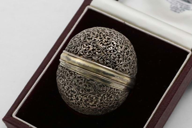 Smaller novelty pieces or items of historic curiosity have special appeal for silver collectors. A Victorian pair of novelty pepperettes, cast as fighting cocks, made £2500; and a rare Victorian vesta case, modelled as a frog, made £2120. A fine agate bowl and cover with silvergilt mounts of Renaissance design leapt above its £1800 estimate to make £5250. A parcelgilt hinged globular case just 2-inches long might have been mistaken for a vinaigrette but it was actually a rather more curious piece. It was made at about the time that King Charles II was on the throne (c.1670) and was designed to hold a `bezoar’ which is a hard indigestible mass found in the intestine. Unappealing as this sounds, bezoars were once believed to hold potent medicinal properties and were thought to be antidotes to any poisons or maladies. As such, they were much prized and were carried by their owners in small and elegant cases as a constant protection. This holder – its original cherished bezoar long since gone – made £3000.