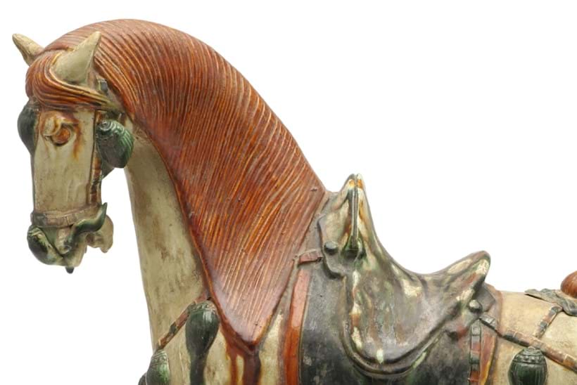 One of the most notable results came from a striking Chinese Sancai glazed pottery horse, catalogued as Tang Dynasty or later. Standing at 47cm high and measuring approximately 46cm in length, the piece was of impressive scale. It sold for a remarkable £6,875 (including buyer’s premium). This result speaks to the enduring appeal of Tang-style sancai wares, prized for their vibrant tri-colour glazes and connection to China’s golden age of ceramic artistry.