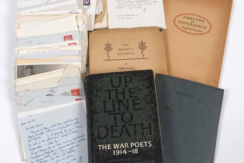 Lawrences’ forthcoming sale of Books, Maps, Manuscripts and Photography on September 23rd includes an important archive of letters, publications and other material relating to Siegfried Sassoon, an English Poet, writer and solider. Decorated for bravery on the Western Front, he became one of the leading poets of the First World War.