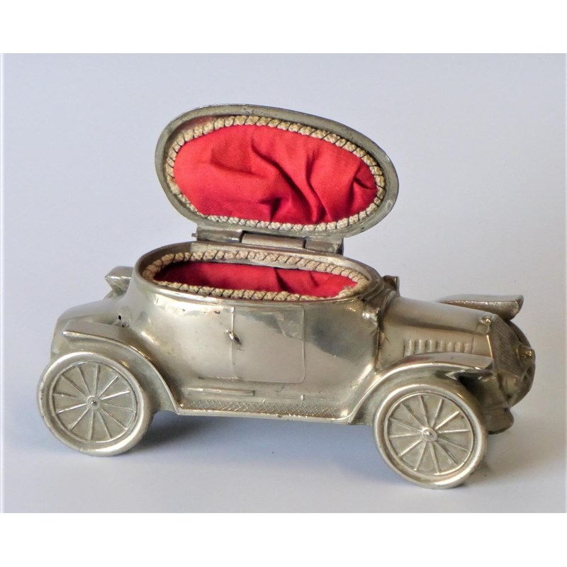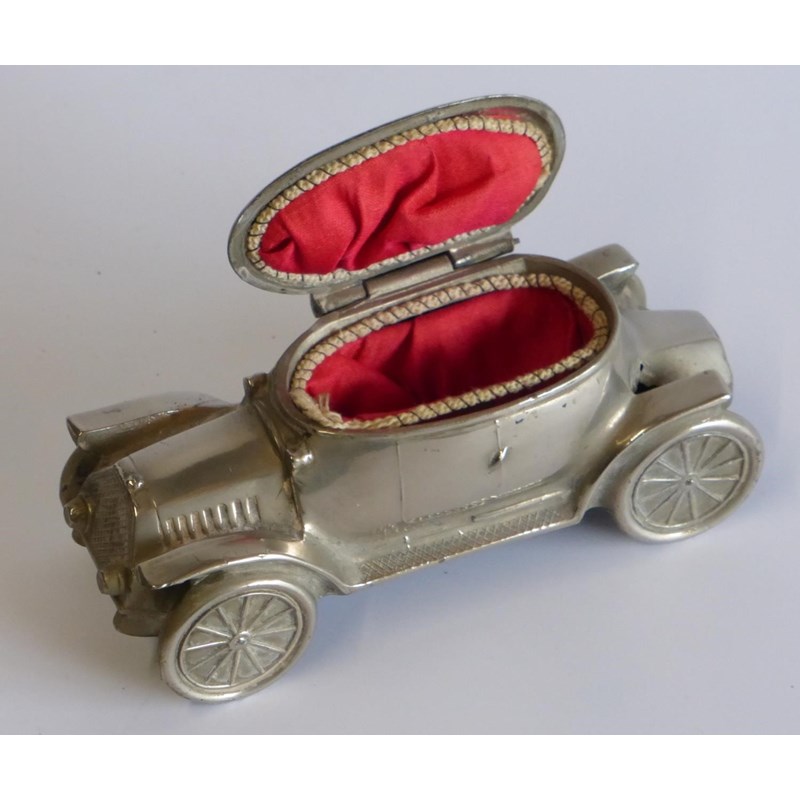 in the guise of motor-cars, nickel-plated base metal, each 13-cms long. Similar items featured in Automobilia a Guide for Collectors by M.J.W-W, page 168. (2)