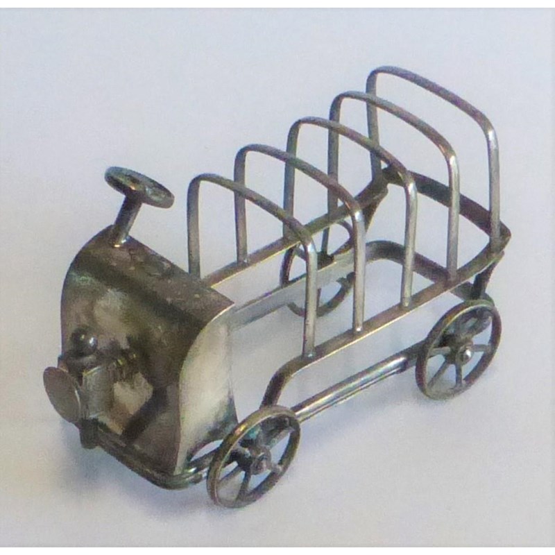 A rare and unusual domestic item in the guise of a motor-car, having a steering wheel and centrally mounted candle lamp. Nickel-plated brass. 16cms long. As featured in Automobilia a Guide for Collectors by M.J.W-W.