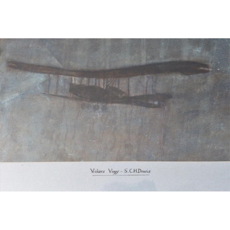 S. C. H 'Sammy' Davis A watercolour (?) of a Victor Vimy bi-plane, overmounted in a contemporary oak glazed frame. Inscribed in pen on the mount 35 x 19-cms.