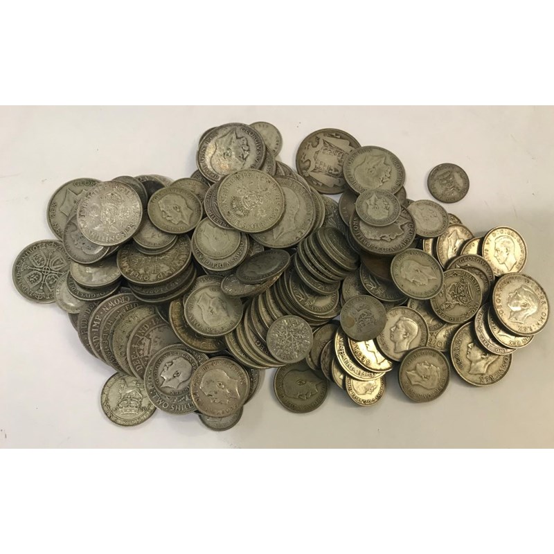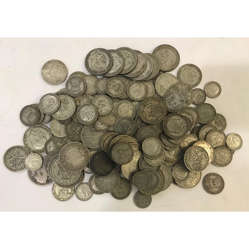 Halfcrowns for 1894, 96-99, 1920-23, 26-27, 30-31, 35(2), 38-45(2). Florins for 1921-23, 28, 30(2), 33, 36, 38-44(2), 45-6. Shillings for various years 1895-1946. 102 coins.