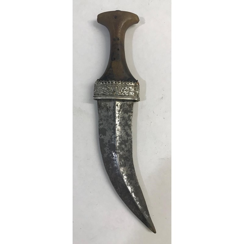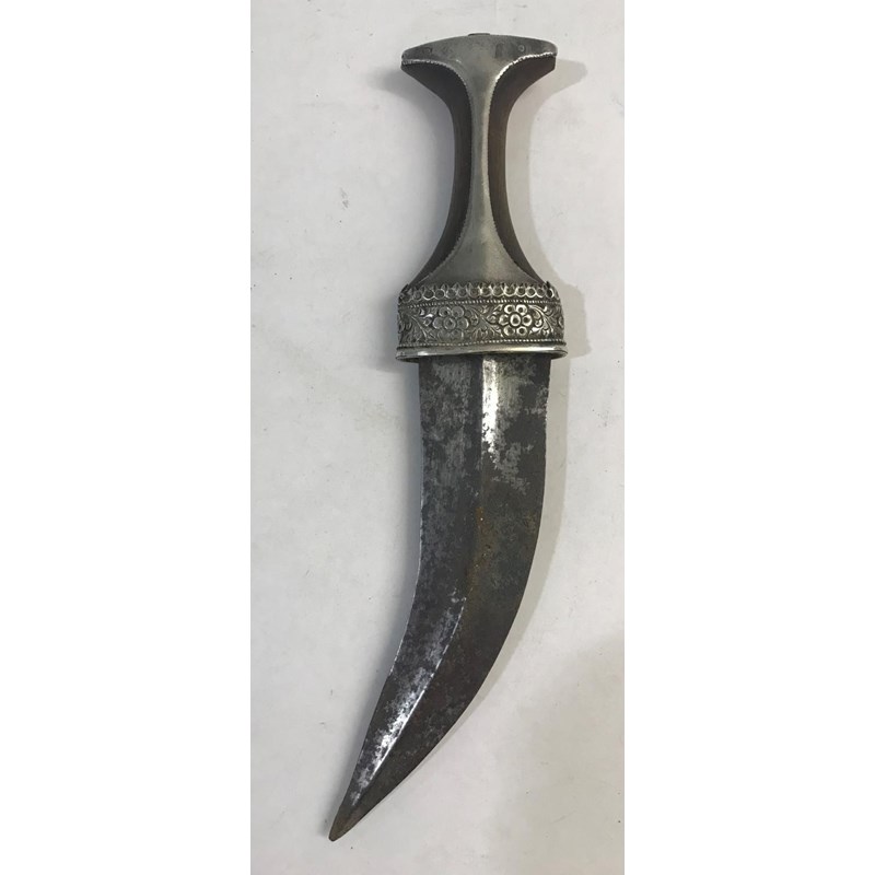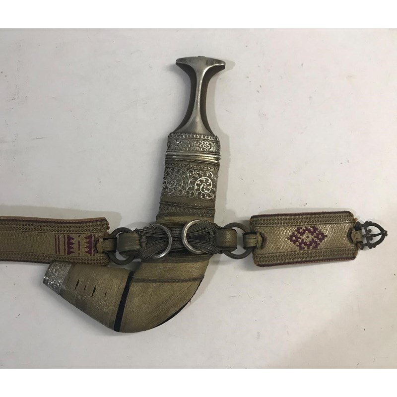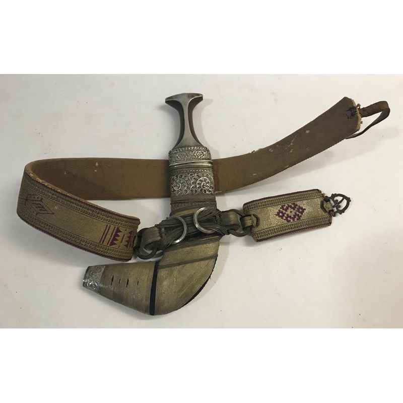 AN OMANI SILVER MOUNTED KHANJAR AND BELT.