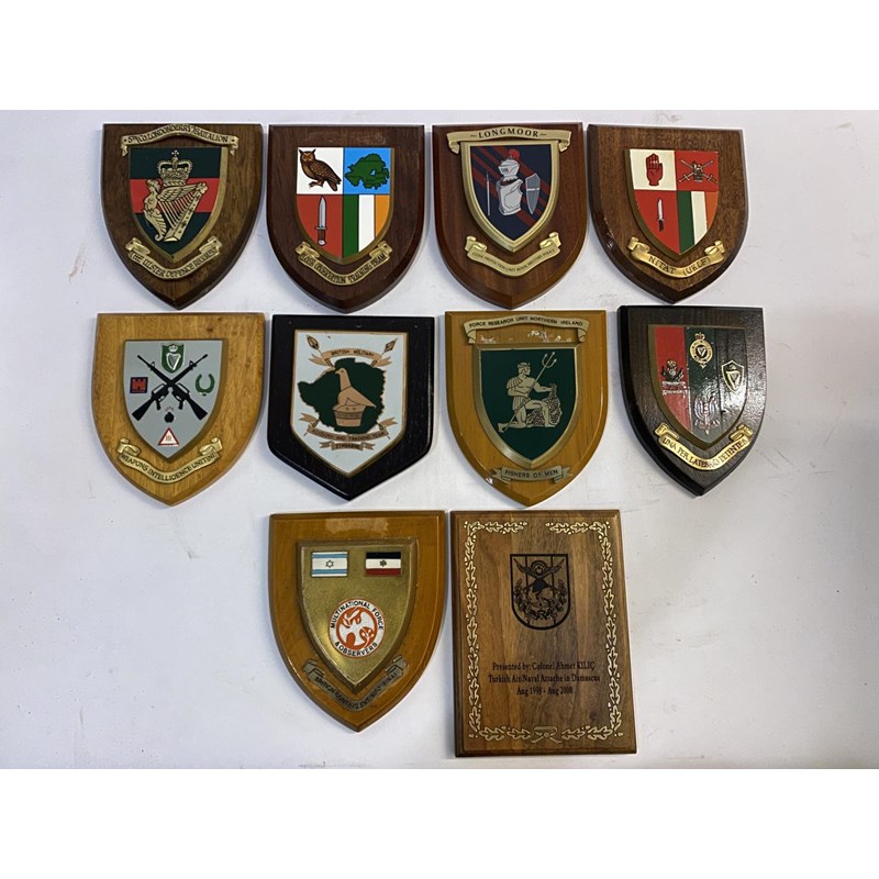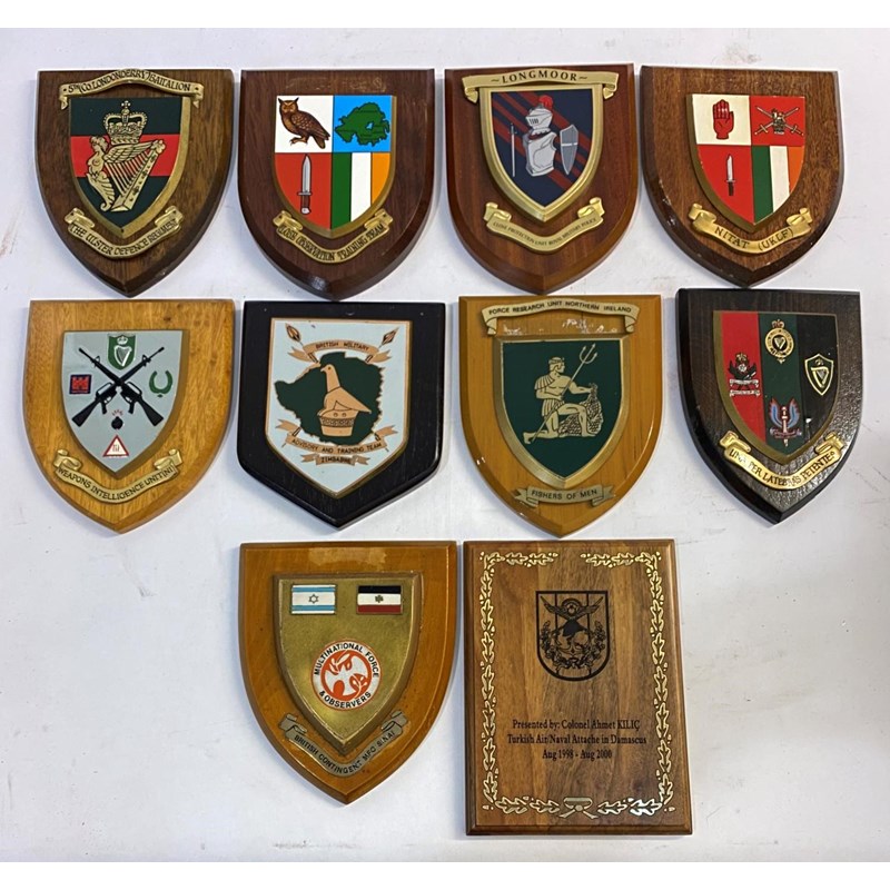A COLLECTION OF TEN MILITARY PRESENTATION SHIELDS.