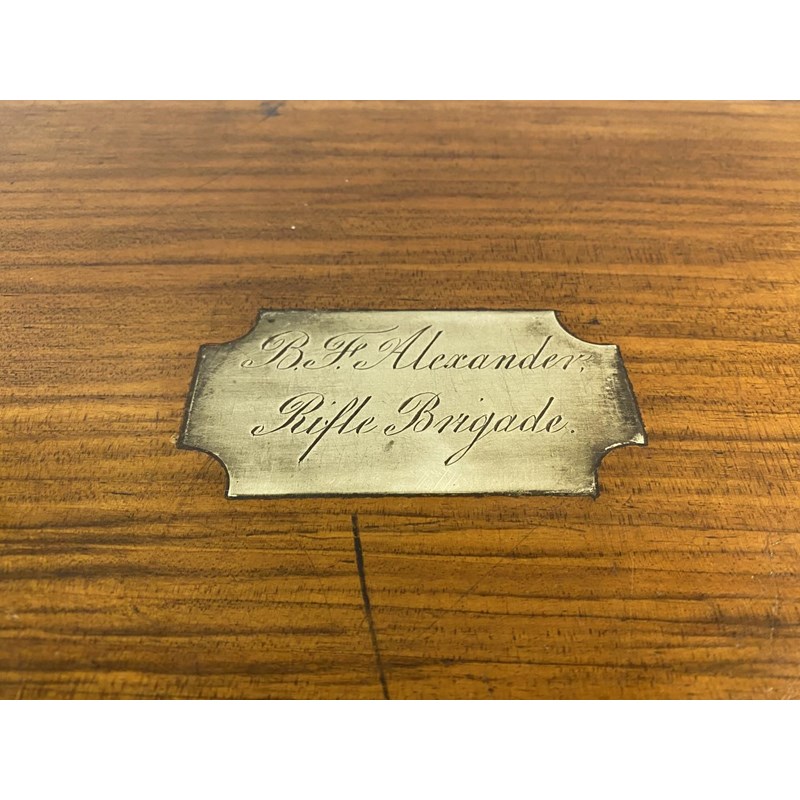 AN UNUSUALLY LARGE CAMPAIGN TEA CADDY WITH AN ILLUSTRIOUS RIFLE BRIGADE HISTORY.