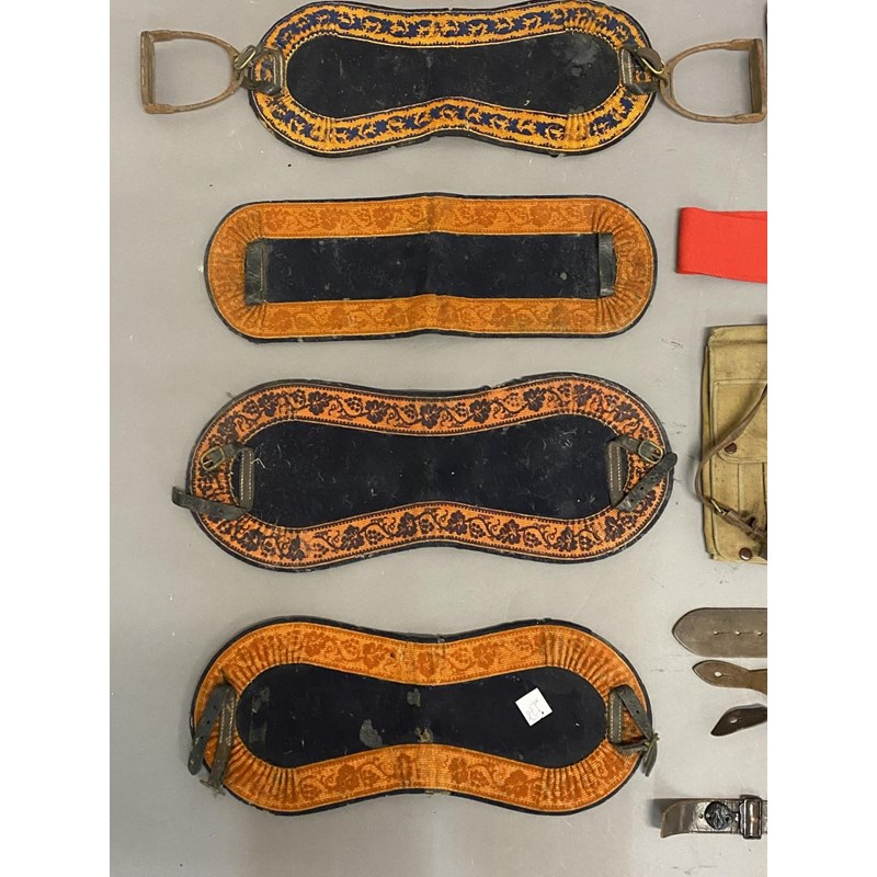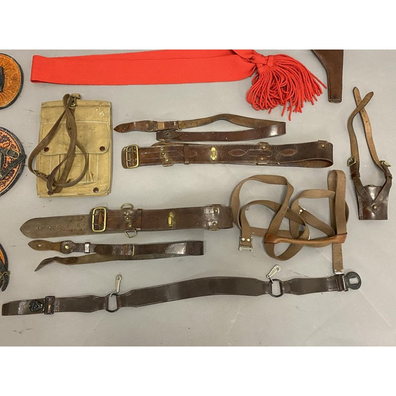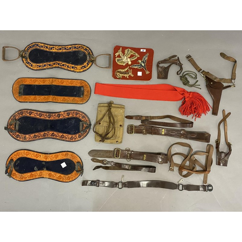 An Officers Sam Browne and Mapcase, Holster and sword belt straps. Saddlery and spurs, related equipment and buttons, etc