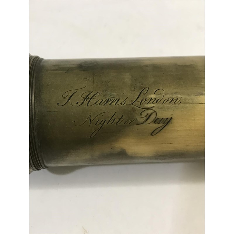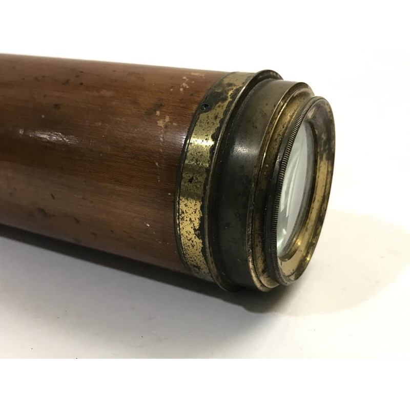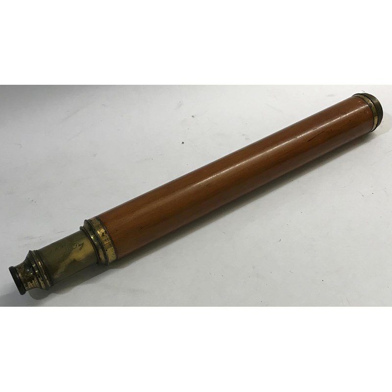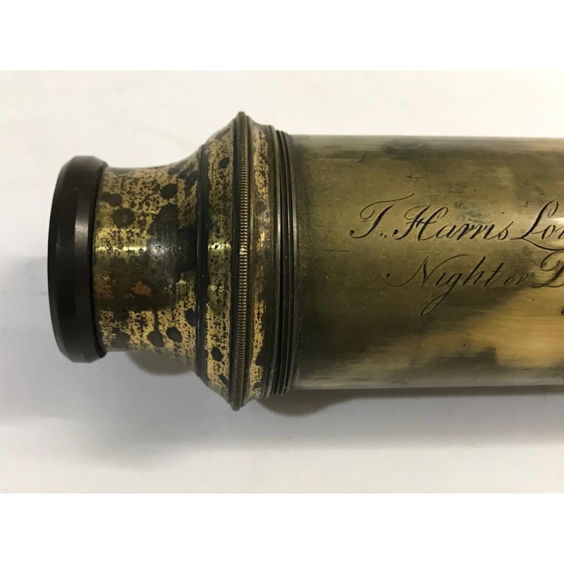 A J. HARRIS 'NIGHT AND DAY' TELESCOPE. A single draw mahogany and brass mounted telescope marked 'J. Harris, London Night and Day' 91cm fully extended, 52.5cm closed.