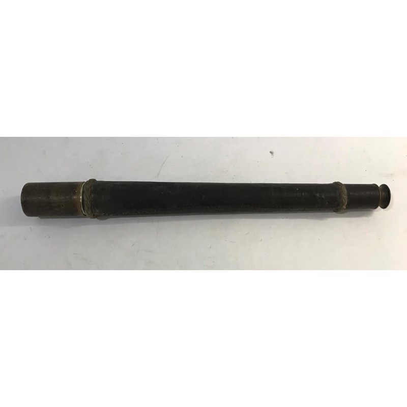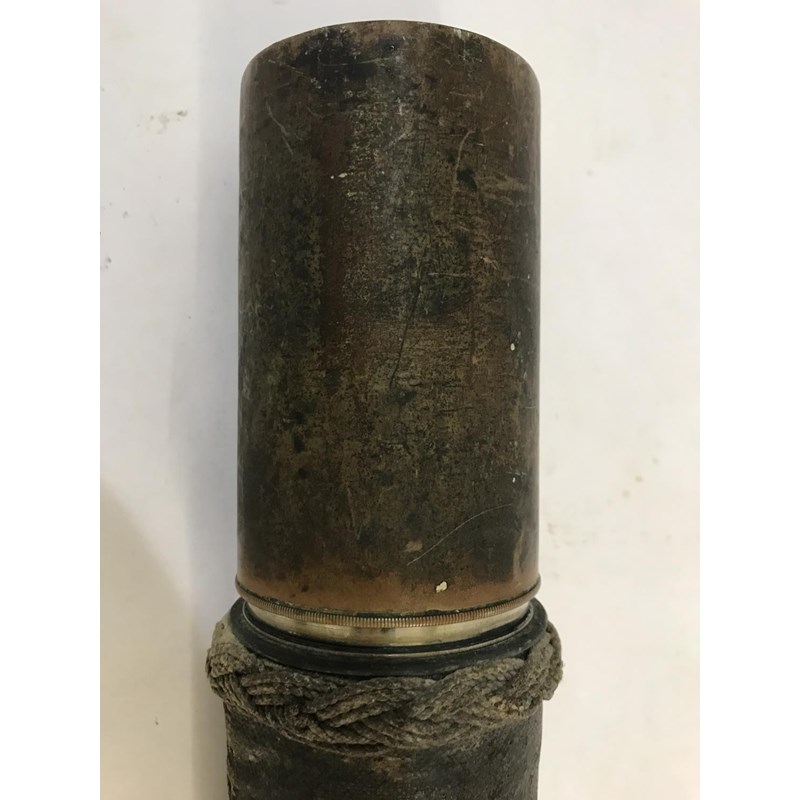 A 19TH CENTURY LONDON MADE TELESCOPE. A single draw telescope with extending shade, canvas and rope covered body, indistinctly engraved 'D... London 7667' and possibly with an owners name, 87cm fully extended.
