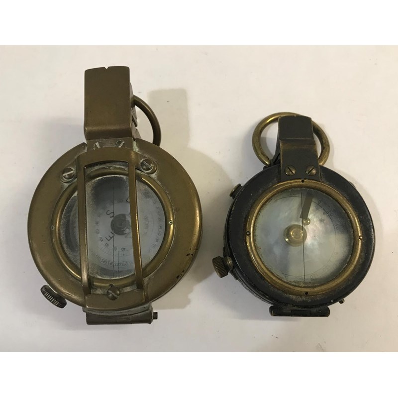 A FIRST WORLD WAR AND A SIMILAR SECOND WORLD WAR COMPASS.
