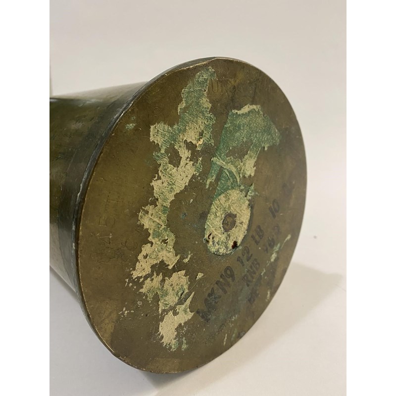 A brass 12 pounder Naval shell case, marked to the underside 'Mk9 12LB RNB 96R' Probably second World War or later, 52.5cm tall, 16/5cm wide.