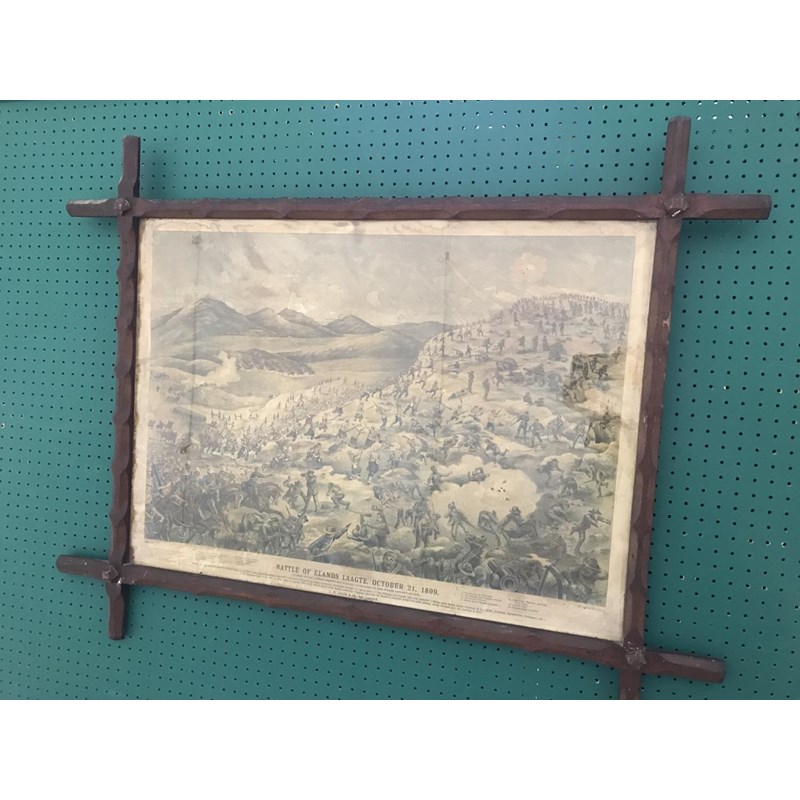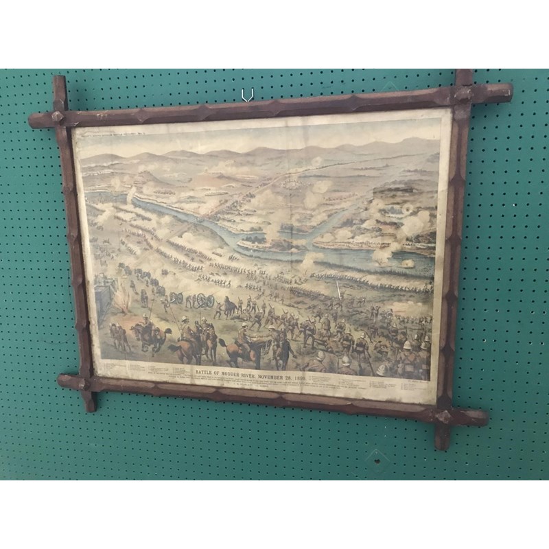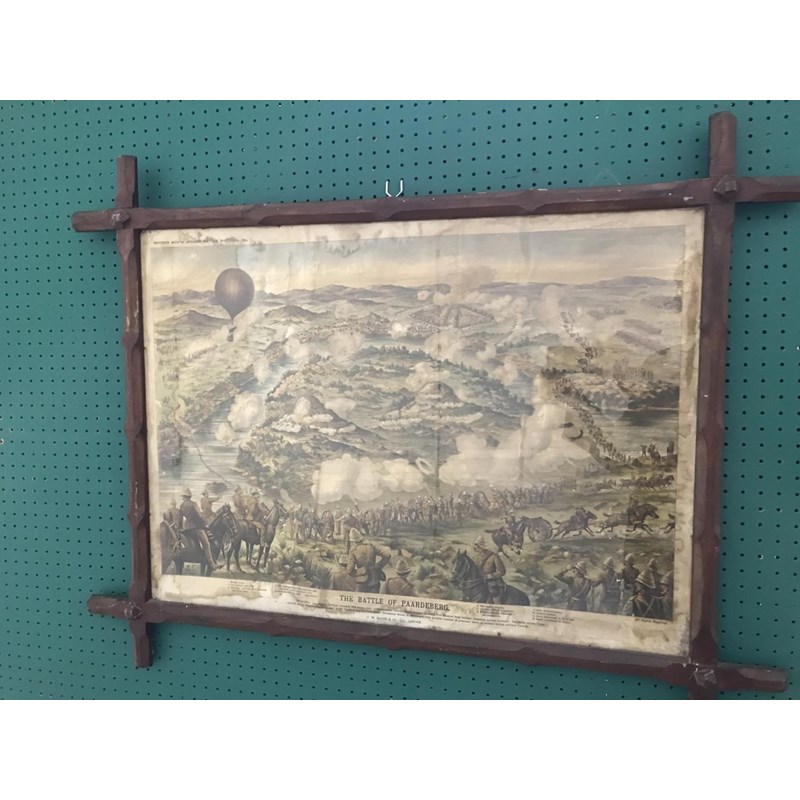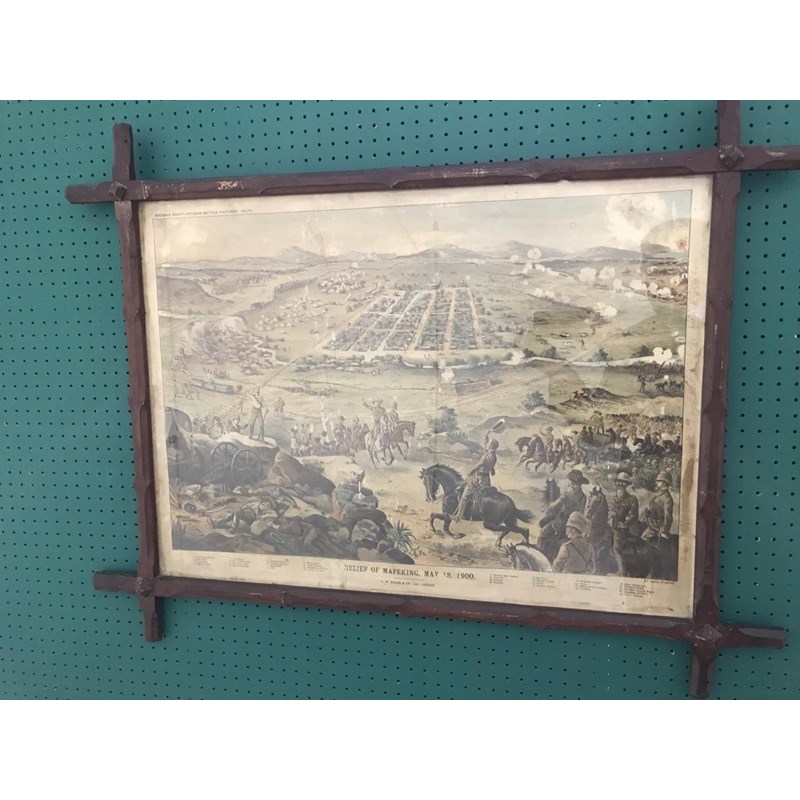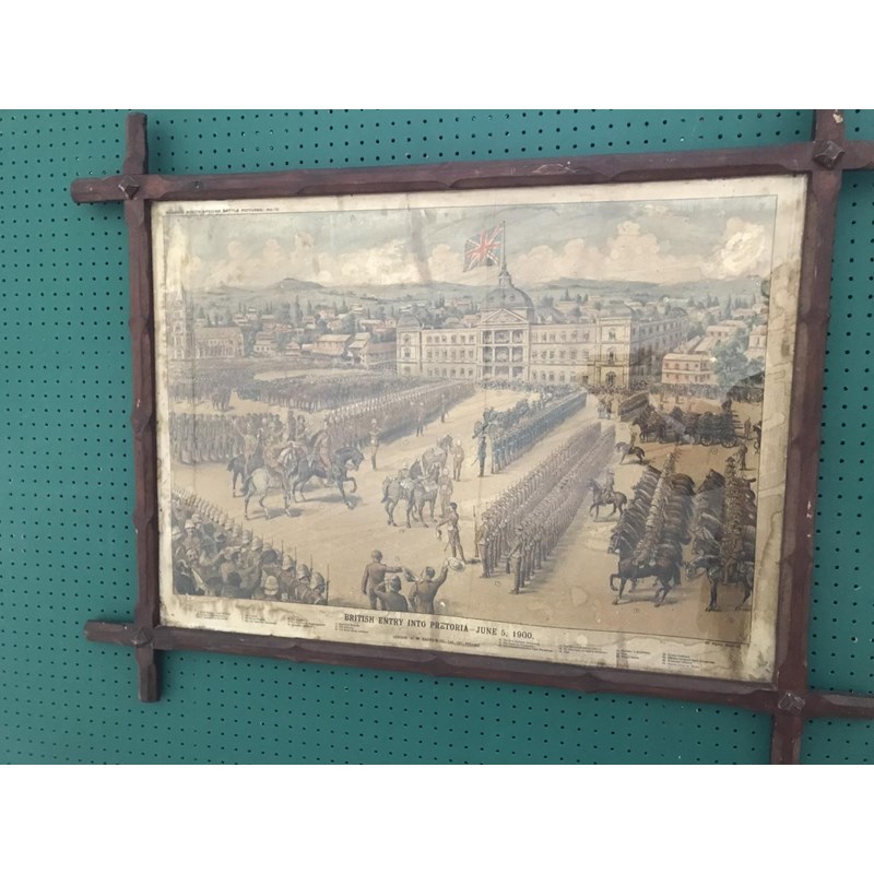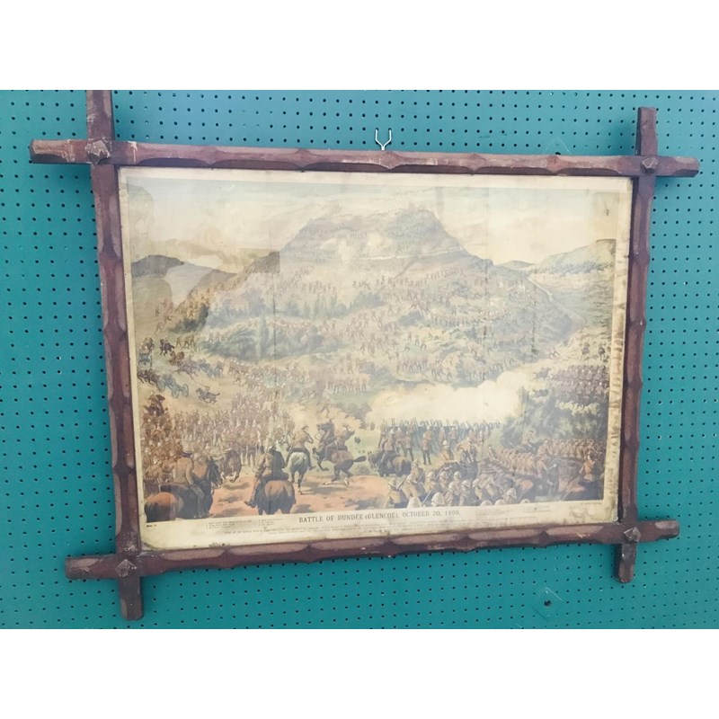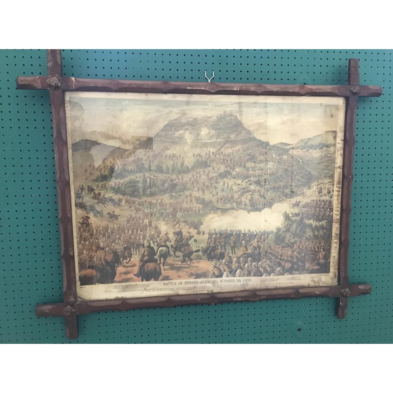 Numbers 1, 2, 5, 6, 7, 11 and 12 from the set of 12. No 1 being 'Battle of Dundee (Glencoe) October 20 1899. Colour prints by G.W.Bacon & Co. London. 53.5 x 73 cm framed and glazed in original rustic 'Oxford' style frames. Seven prints. Poor Condition throughout.