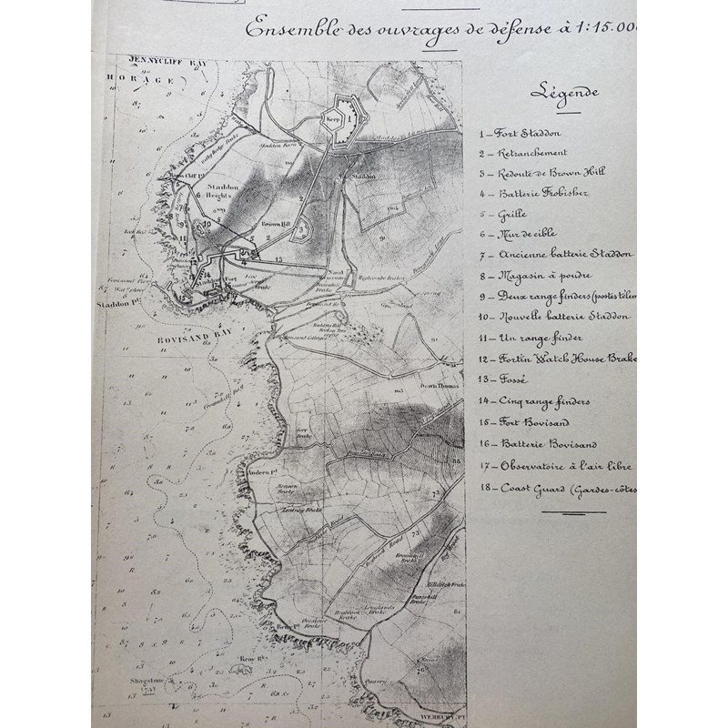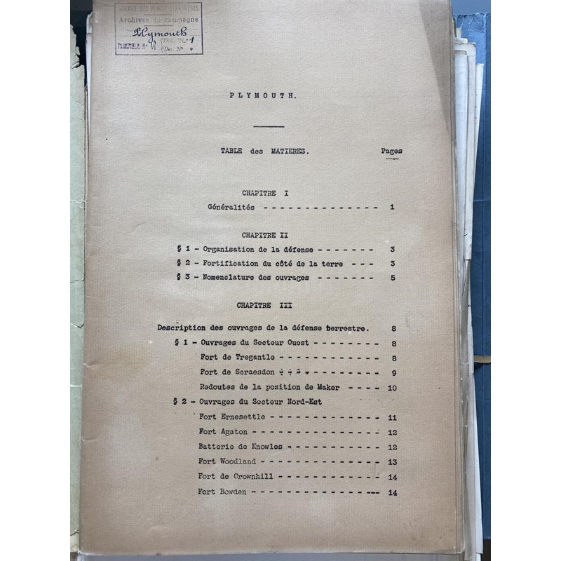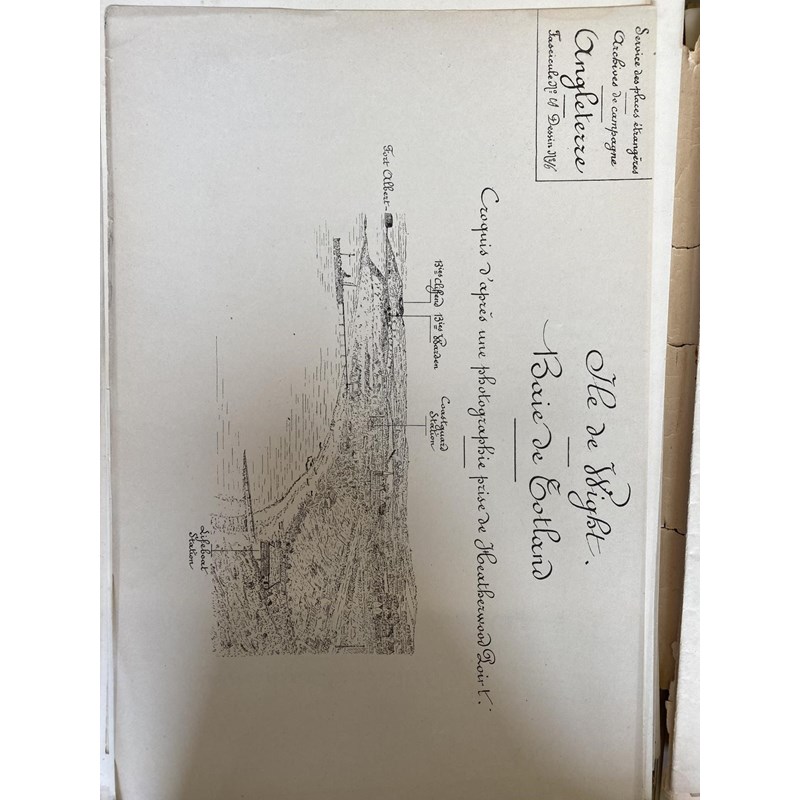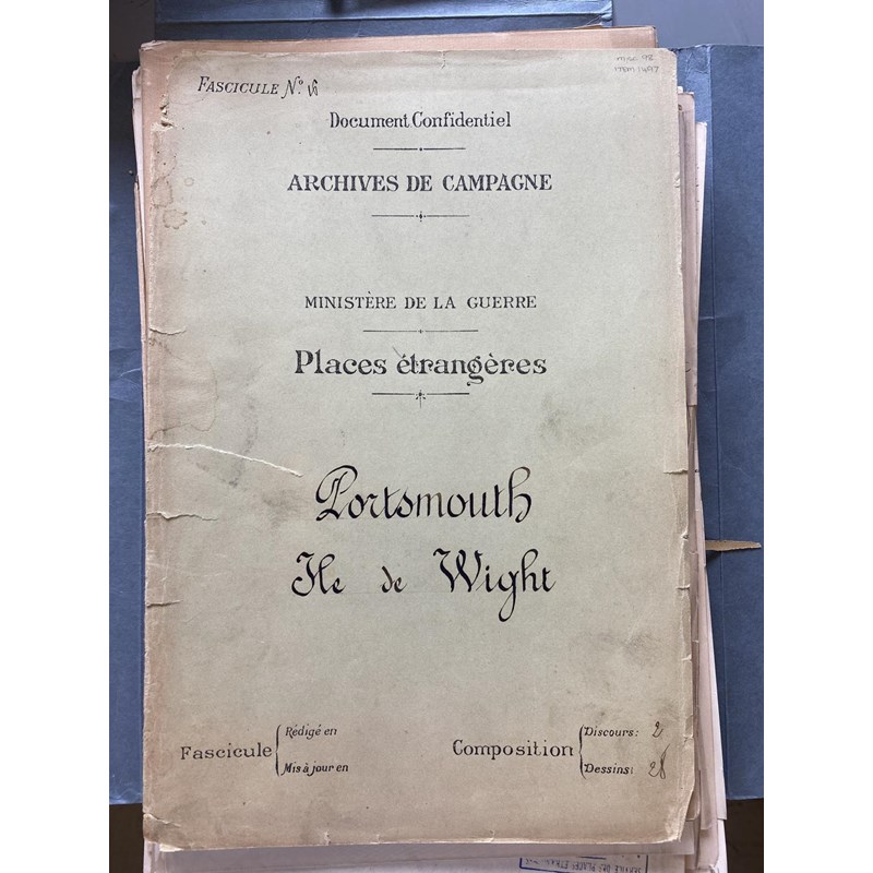 A selection of maps, drawings and reports relating to the coastal defences of the United Kingdom, the documents marked 'Document Confidentiel Archives De Campagne Ministere De La Guerre Places etrangeres. with reports for Plymouth, Portsmouth and other locations with reports on the organisation of defences, fortifications and detailed analysis of each place surveyed, some sections amended and updated, possibly c1870 - 1905.