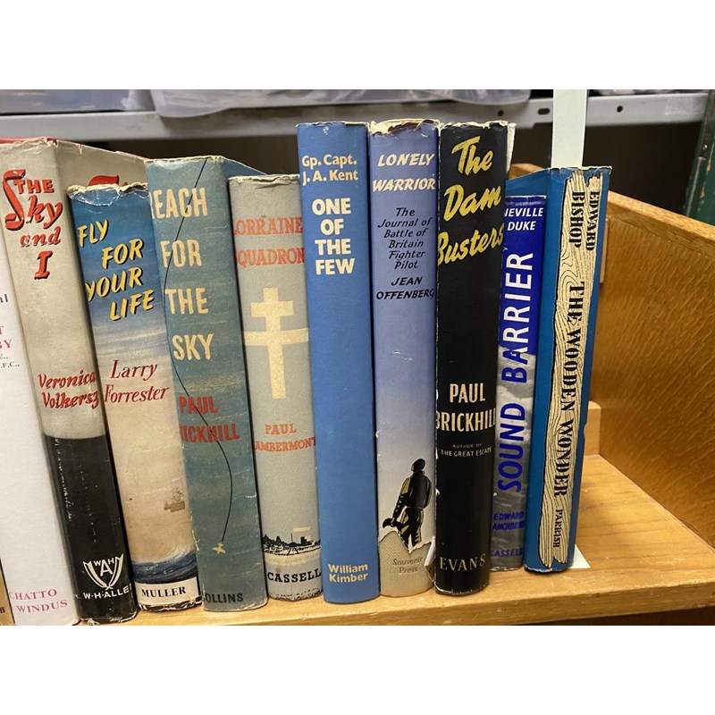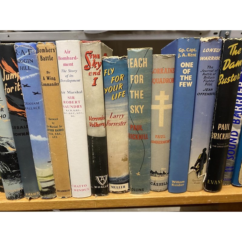A collection of 1950's and 1960's hardback volumes on the history of the RAF to include 'The Dam Busters' by Paul Brickhill, 'Fly for your life' by Larry Forrester and many others, many with decorative dust jackets. Approximately 29 volumes.