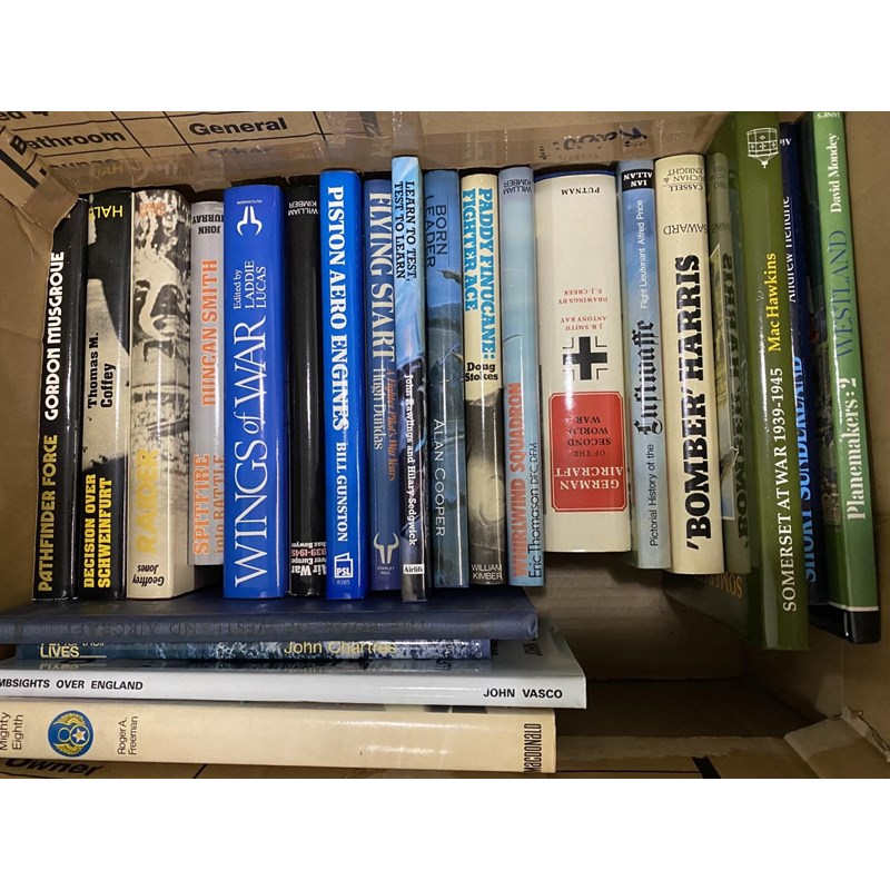 A collection of hardback books to include 'Combat Report' by Hector Bolitho, 'Men of the RAF' by William Rothenstein and Lord David Cecil, 'Fighter Squadrons of the RAF' and 'Bomber Squadrons of the RAF' by Joh Rawlings and Philip Moyes and many others. approximately 75 volumes.