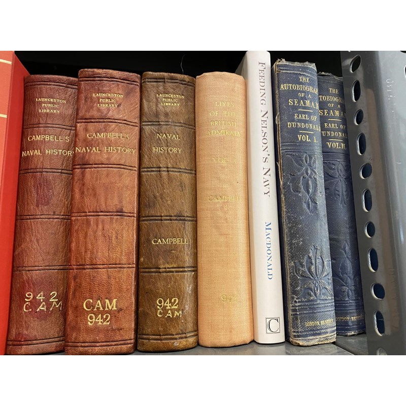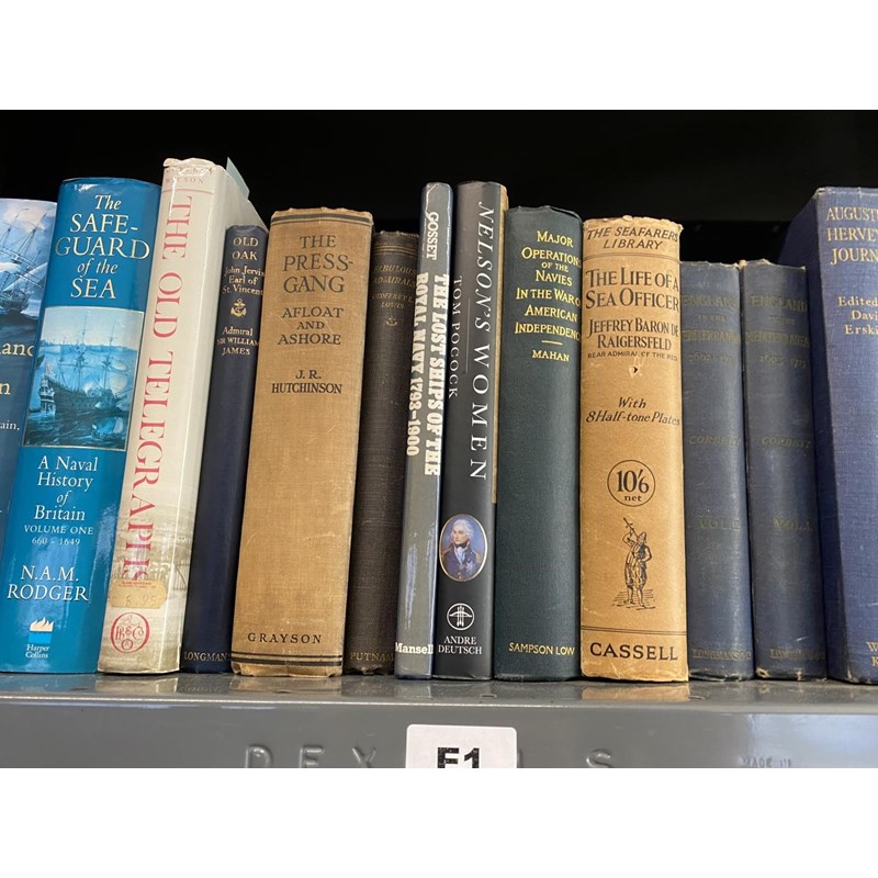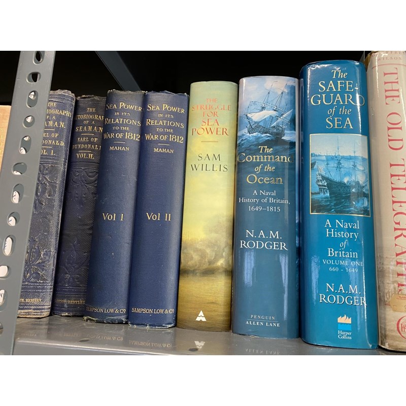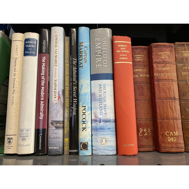 A selection of books about Naval History to include three volumes from Lives of the British Admirals containing a new and accurate Naval History by Dr J.Campbell, Sea Power in its relations to the War of Eighteen Hundred and Twelve by Captain Mahan, in two volumes, The Making of the Modern Admiralty by Hamilton and others. 41 volumes.