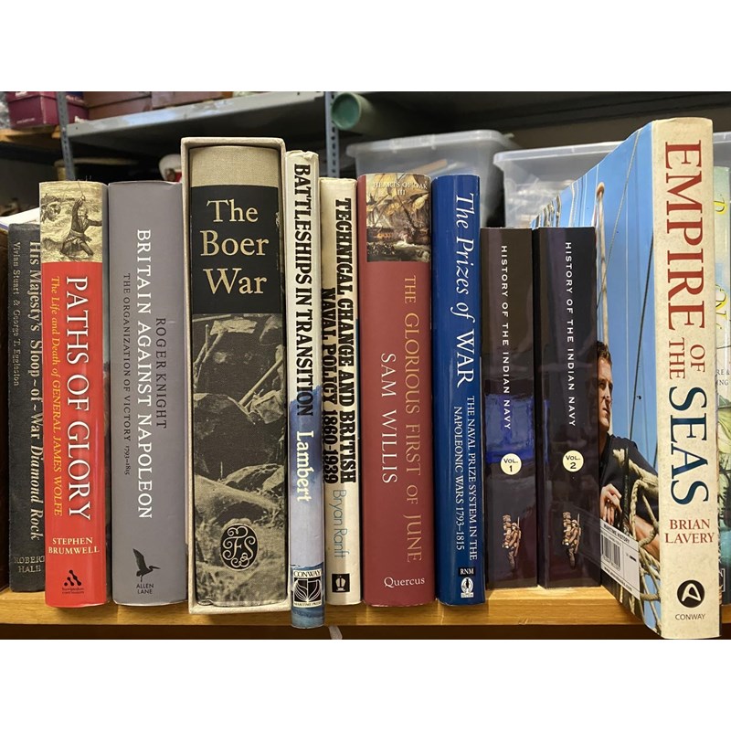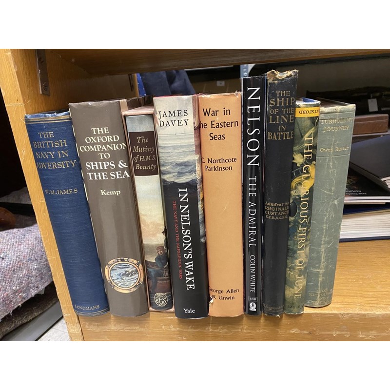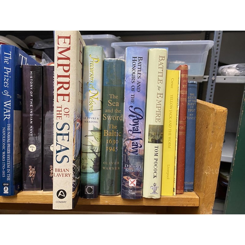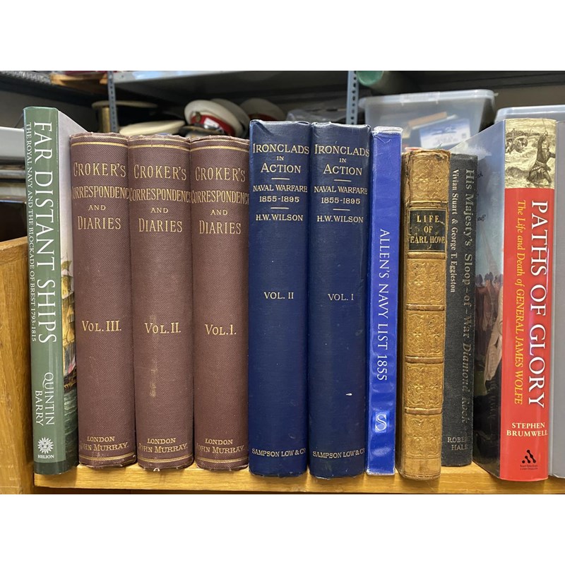 A collection of books including Ironclads in Action a Sketch of Naval Warfare from 1855 to 1895 by H.W.Wilson, 1897, in two volumes, The Crocker Papers the correspondence and diaries of John William Crocker Secretary of the Admiralty from 1809-1830, Ed Louis Jennings, 1884 in three volumes, The life of Richard Earl Howe by Sir John Barrow, 1838 and others, 36 volumes.