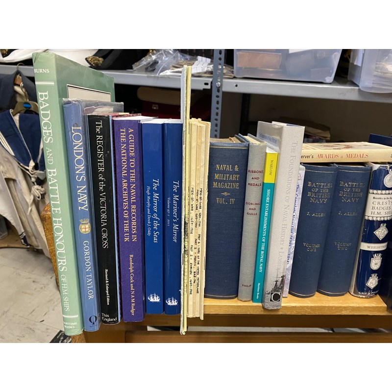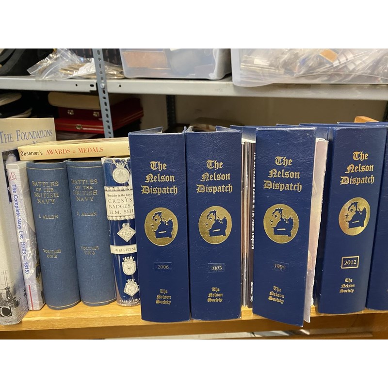 A collection of publications to include Battles of the British Navy by J.Allen in 2 volumes, 1852, A guide to the Naval Records in the National Archives of the UK, The Mirror of the Sea, A Centenary History of the Society for Nautical Research, The Complete Navy List 1793-1815 (CD Rom), Lists of Men of War, The Nelson Dispatch, various years, 25 volumes plus Dispatch.