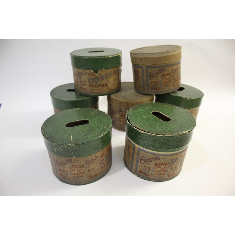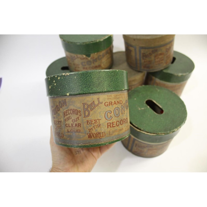 EDISON PHONOGRAPH WAX CYLINDERS - 5 INCH 7 large concert Edison phonograph wax cylinders, 5 inch diameter and in their original boxes.