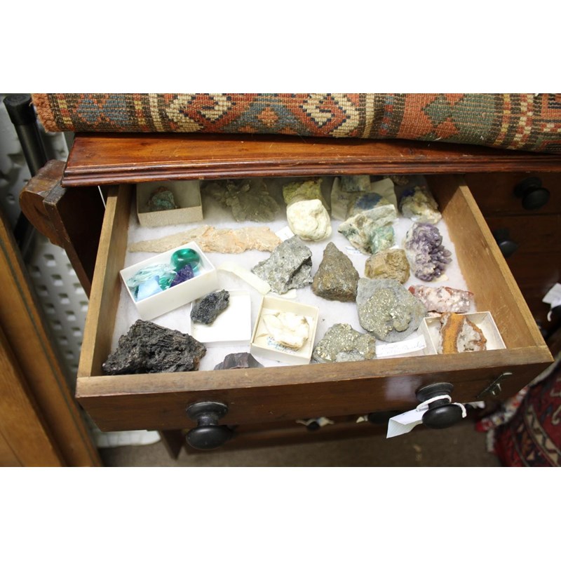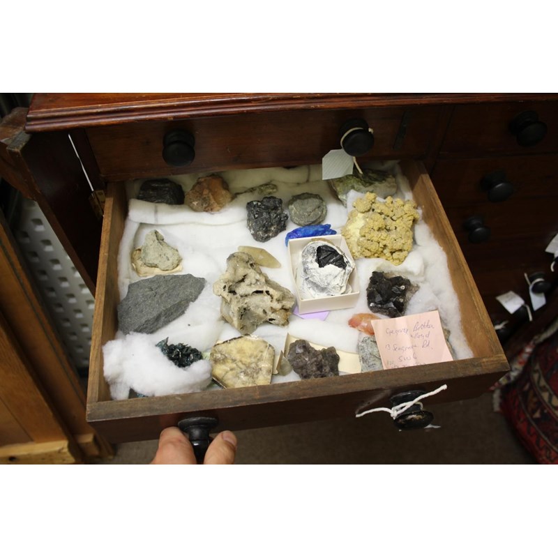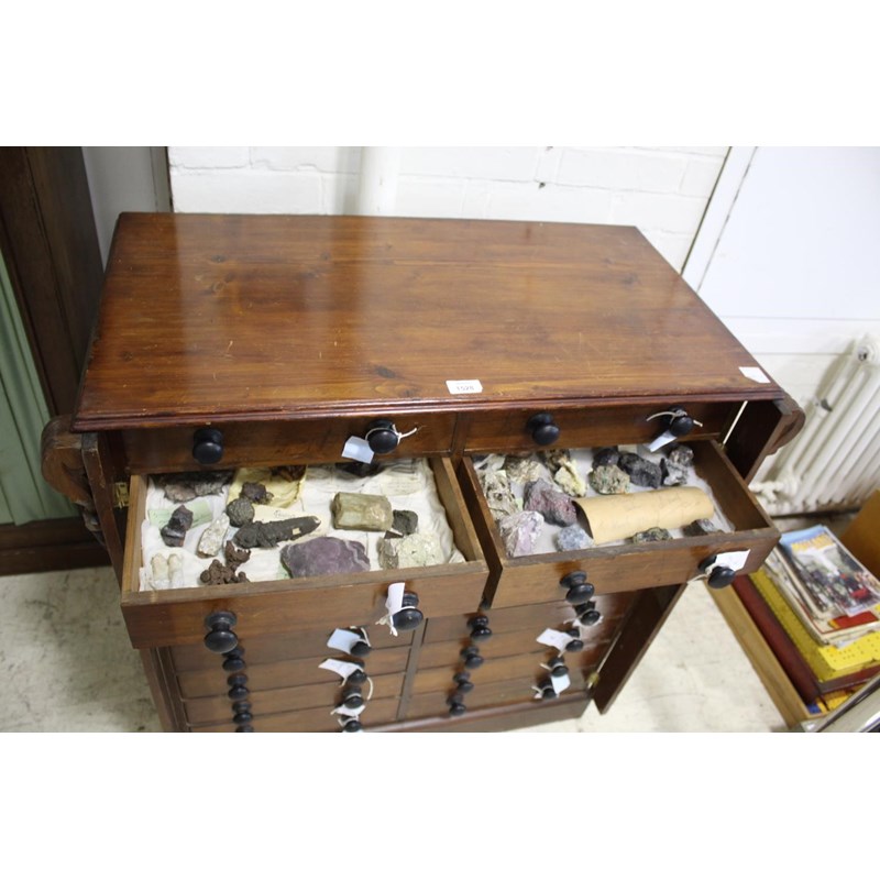 VICTORIAN COLLECTORS CABINET - GEOLOGICAL SPECIMENS & FOSSILS