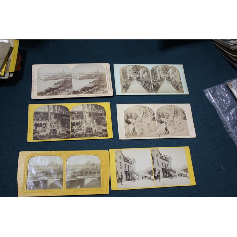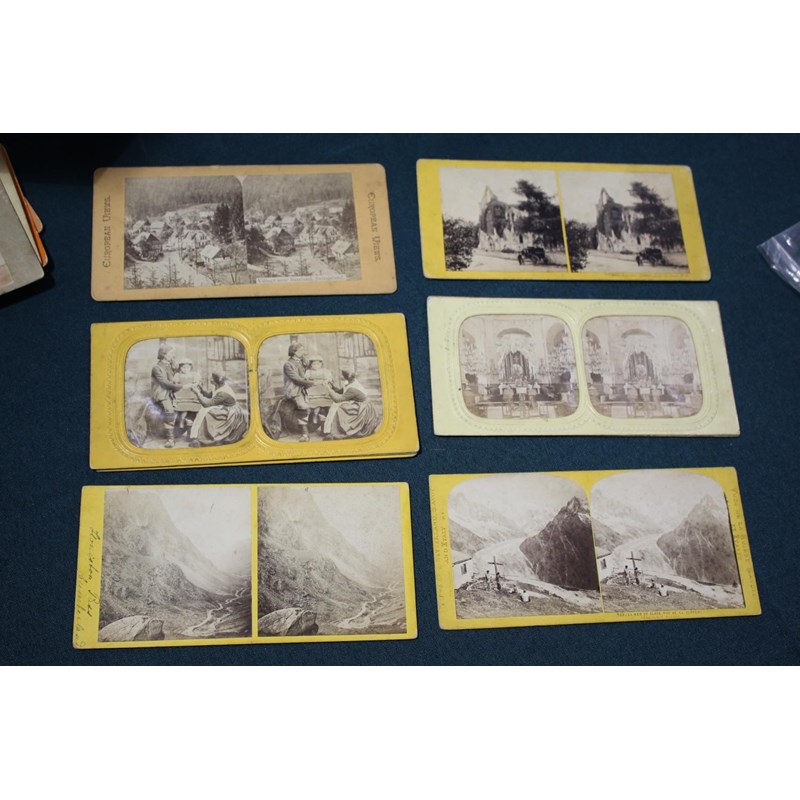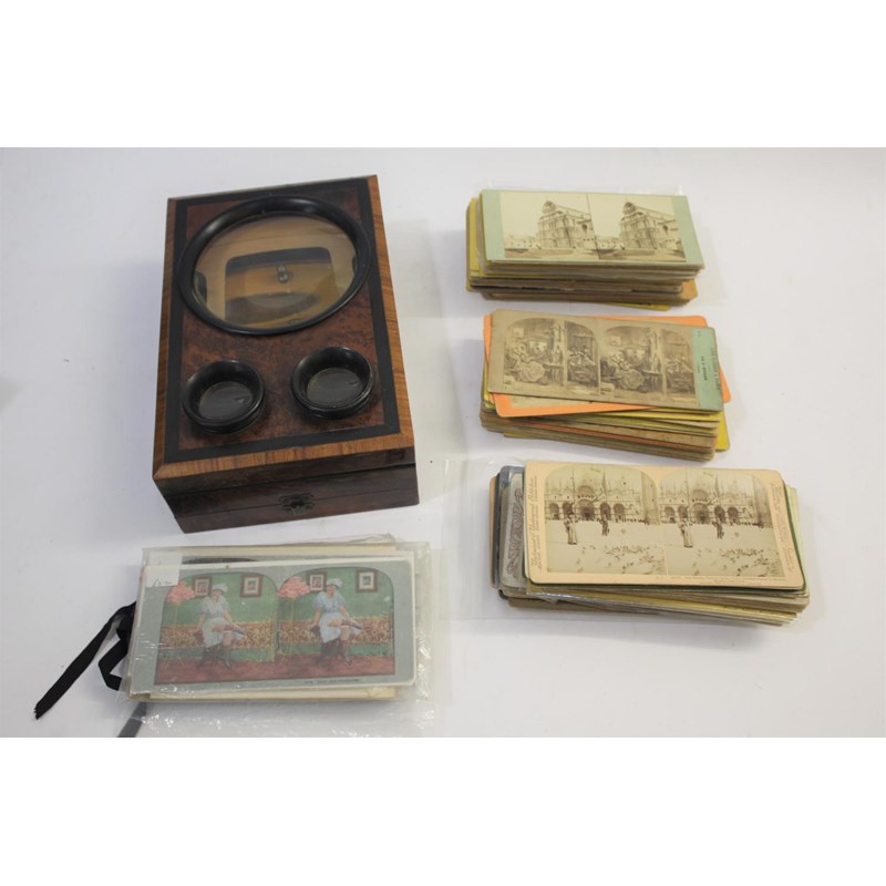 STEREOVIEWER & SLIDES a late Victorian wooden stereo viewer, also with a large qty of slides including Underwood & Underwood, Keystone etc, with scenes from Britain and Europe, North America etc.