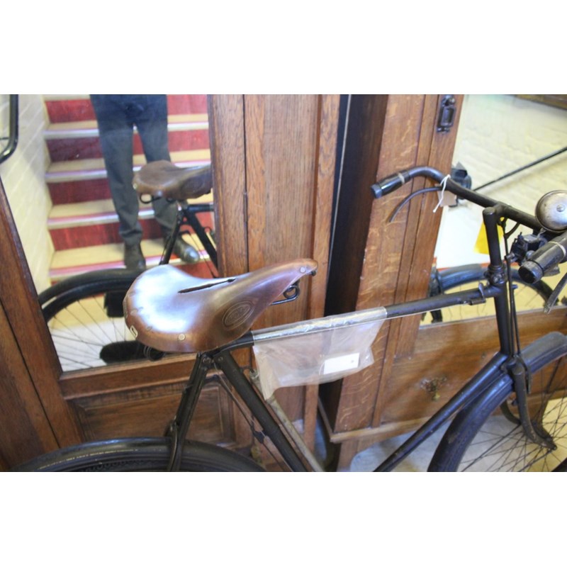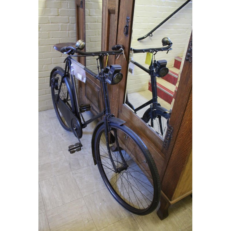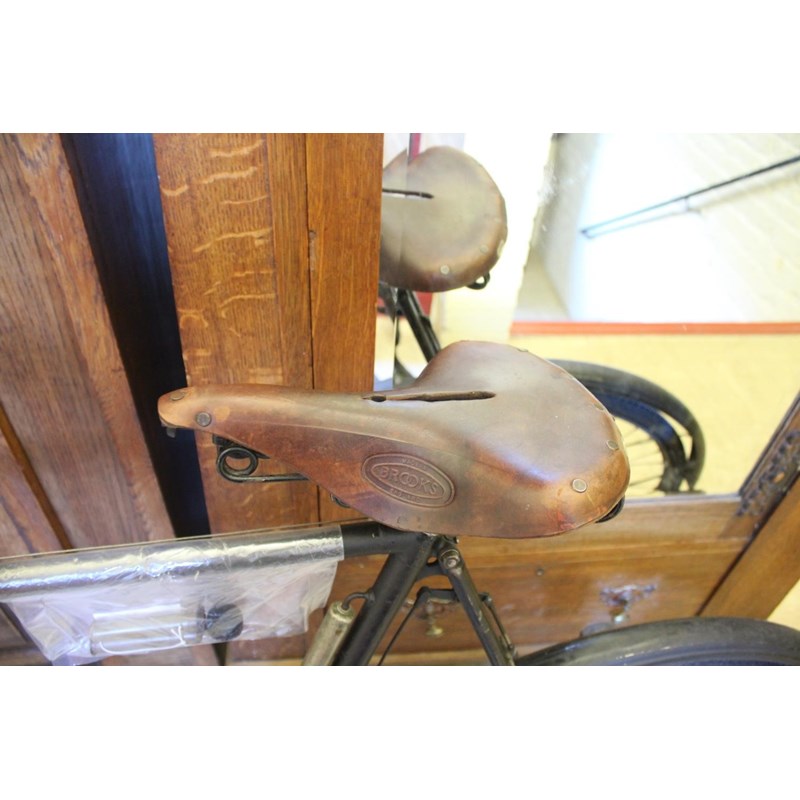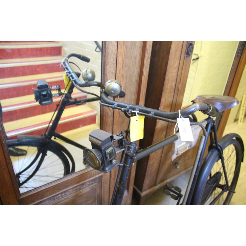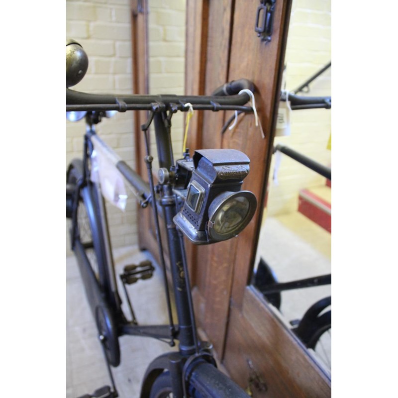 a 1911 Sunbeam Golden Roadster, a very original bicycle with a 26 inch frame number of 106252, with signs of it's original gilt box lining, 28 inch wheels, roller operated Sunbeam patented brakes, leather saddle with a pre war 1910 '00' Brooks badge on the rear, chain guard, steering lock and split rubber pedals. Offered with the machine are two celluloid handlebar inserts, the original caps replaced. A pair of front and rear oil powered lamps and a Lucas bell are fitted.