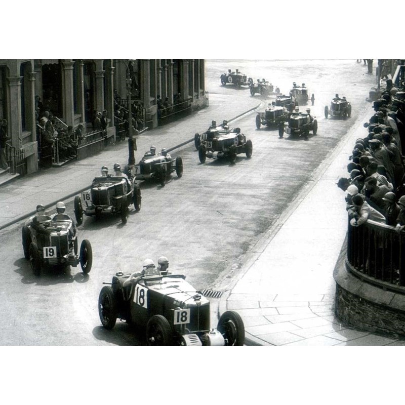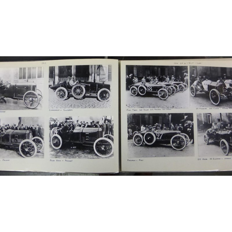 Two black albums of copy photographs taking part in Grands Prix from the 1913 Coupe de L'Auto at Boulogne to post WWII, various sizes, one large photograph dedicated to John Maitland and signed by Juan Manuel Fangio in blue pen. (2)