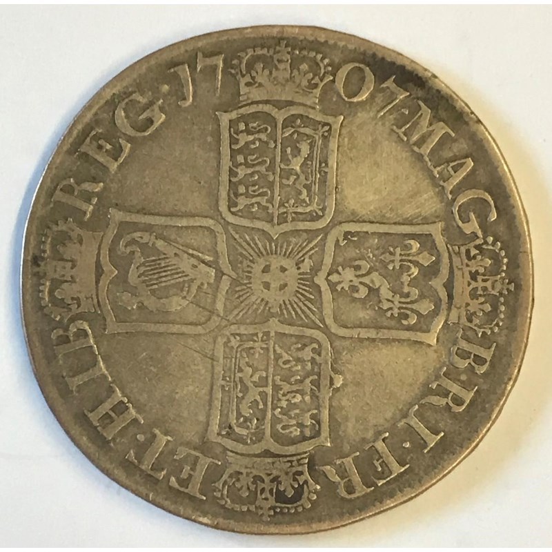 A QUEEN ANNE HALFCROWN. A Queen Anne Halfcrown dated 1707, draped bust l, E beneath the bust for Edinburgh mint. Regnal year Sexto to the rim.