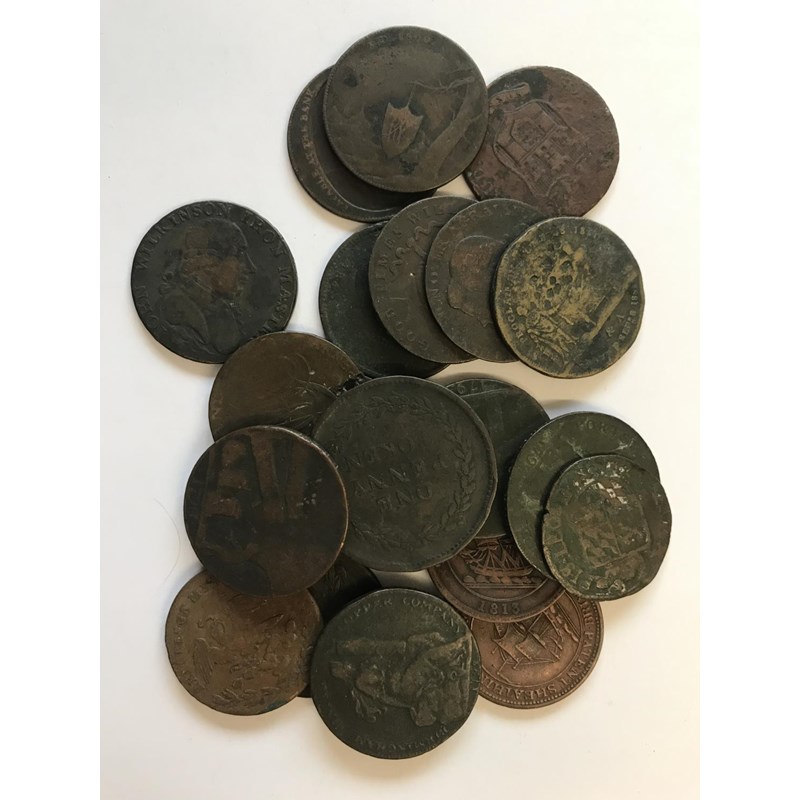 A collection of Copper tokens and provincial issues to include Birmingham Mining and Copper Company Halfpenny and others. 20 tokens,