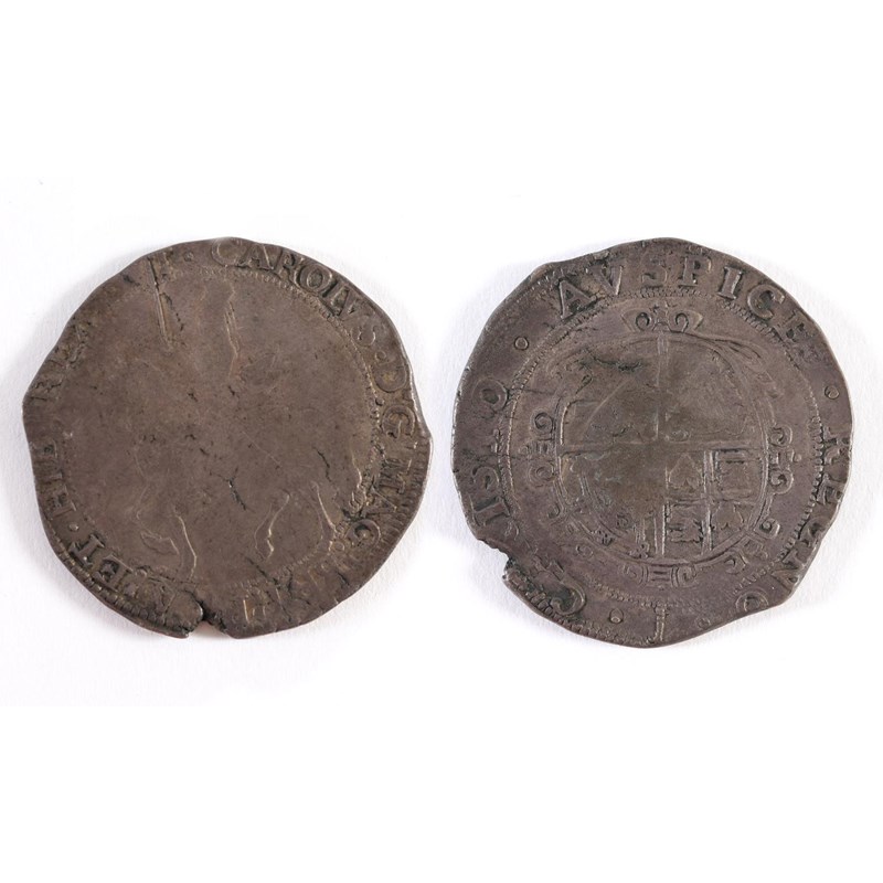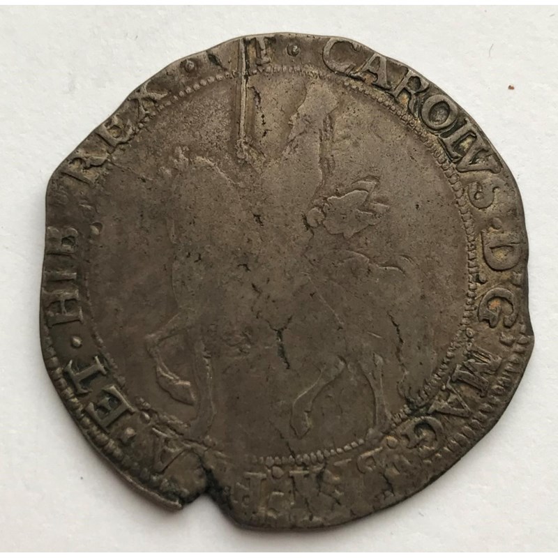 A Charles I Halfcrown, the king on horseback with sash tied in a bow, sword in right hand, the tip to the edge of the coin, reverse with oval coat of arms. mm possibly sceptre for 1646-8, Tower Mint under Parliament,