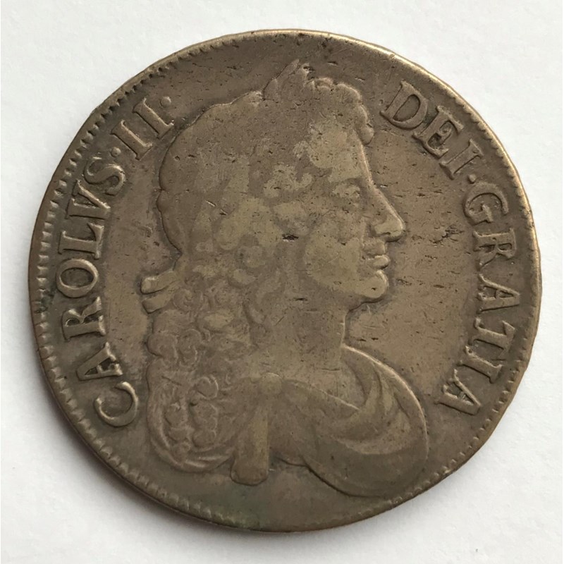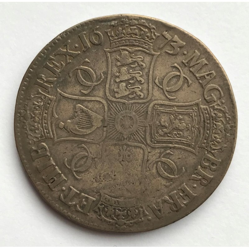 A CHARLES II CROWN. A Charles II Crown dated 1673, third draped bust r, regnal year to the rim Vicesimo Quinto,