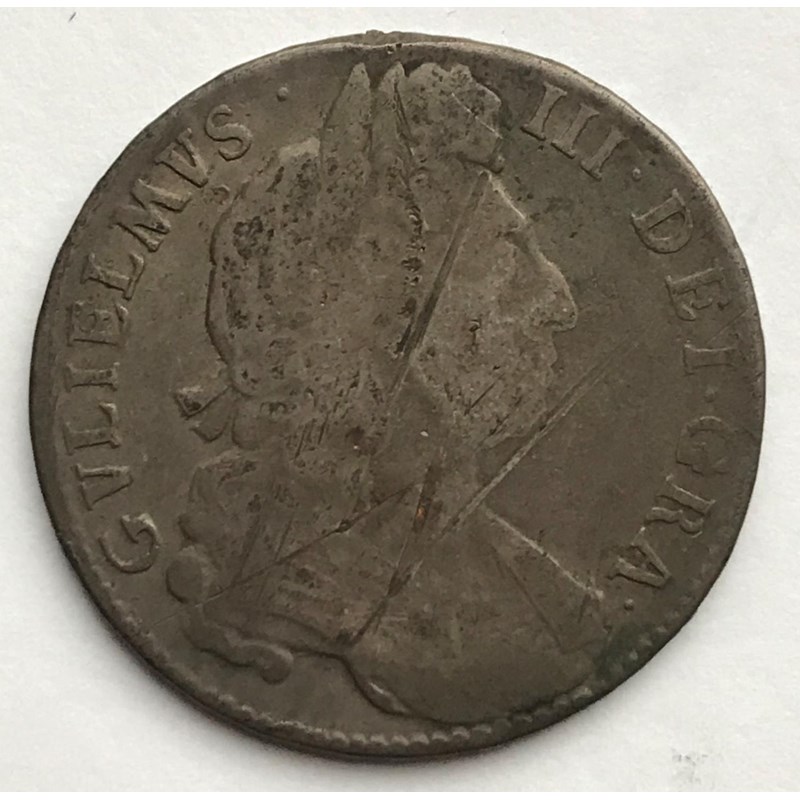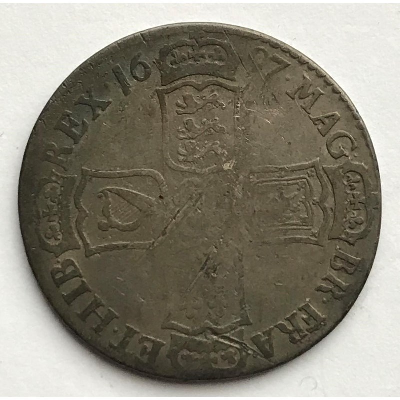 A WILIAM III HALFCROWN. A WILLIAM III Halfcrown dated 1697, laureate and draped bust r, regnal year to rim Nono.