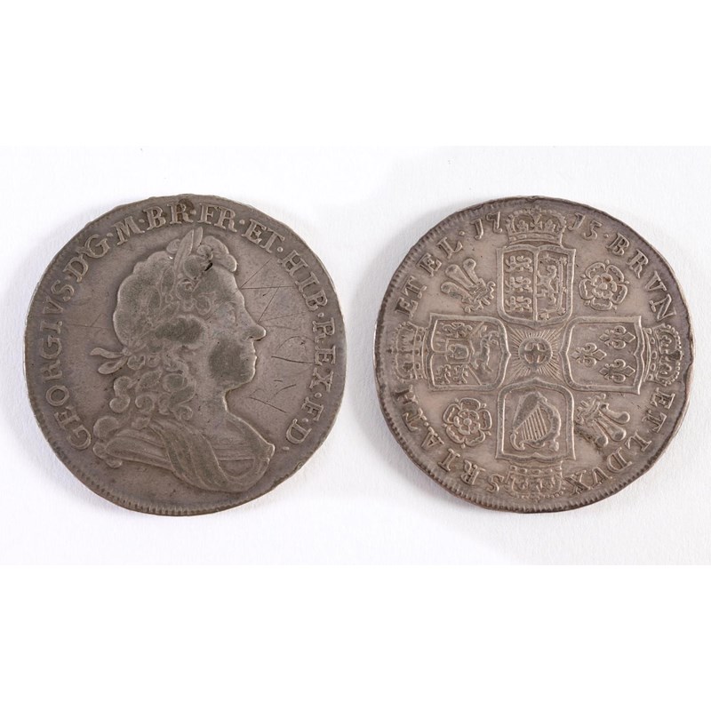 A George I Halfcrown dated 1715, laureate and draped bust r, roses and plumes in angles, scratched initials to obverse, regnal year to the rim Secundo.