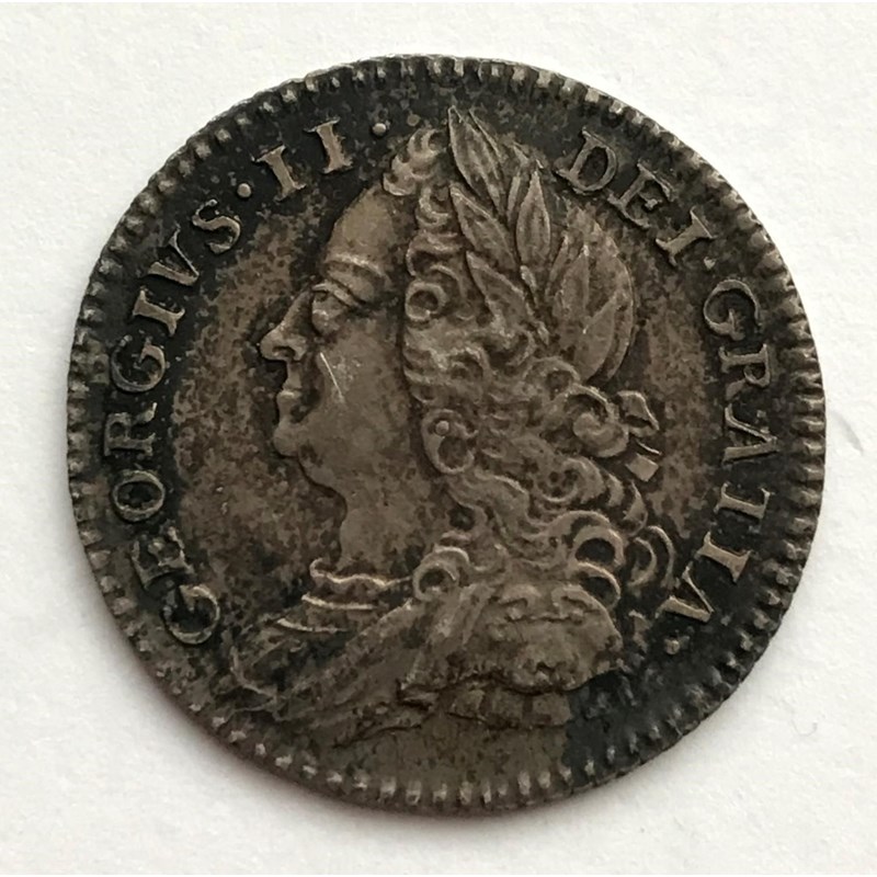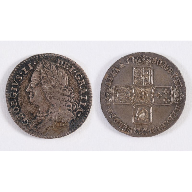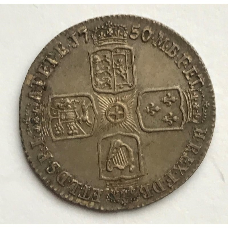 A GEORGE II SIXPENCE. A George II Sixpence dated 1750, old laureate and draped bust l, plain angles.