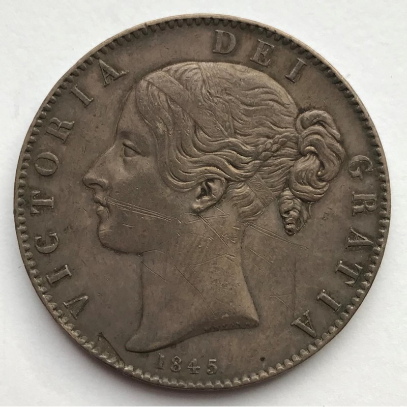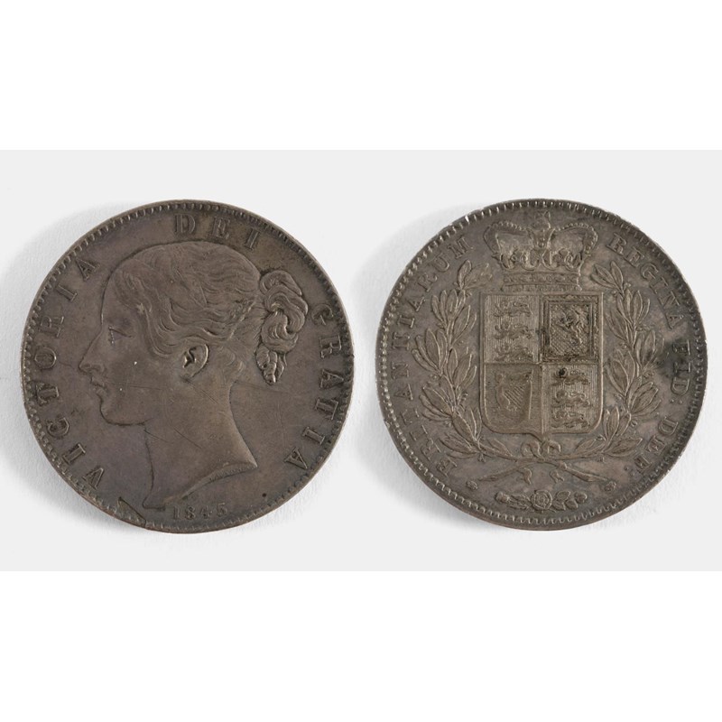 A QUEEN VICTORIA CROWN. A Queen Victoria Crown dated 1845, young head l, regnal year to the rim VIII, cinquefoil stops.