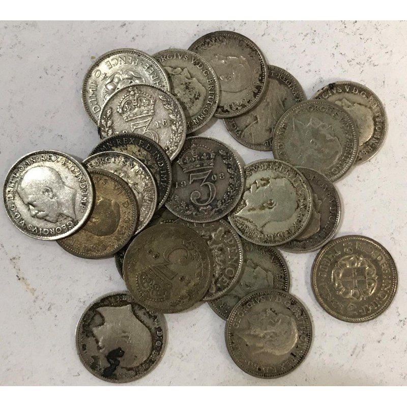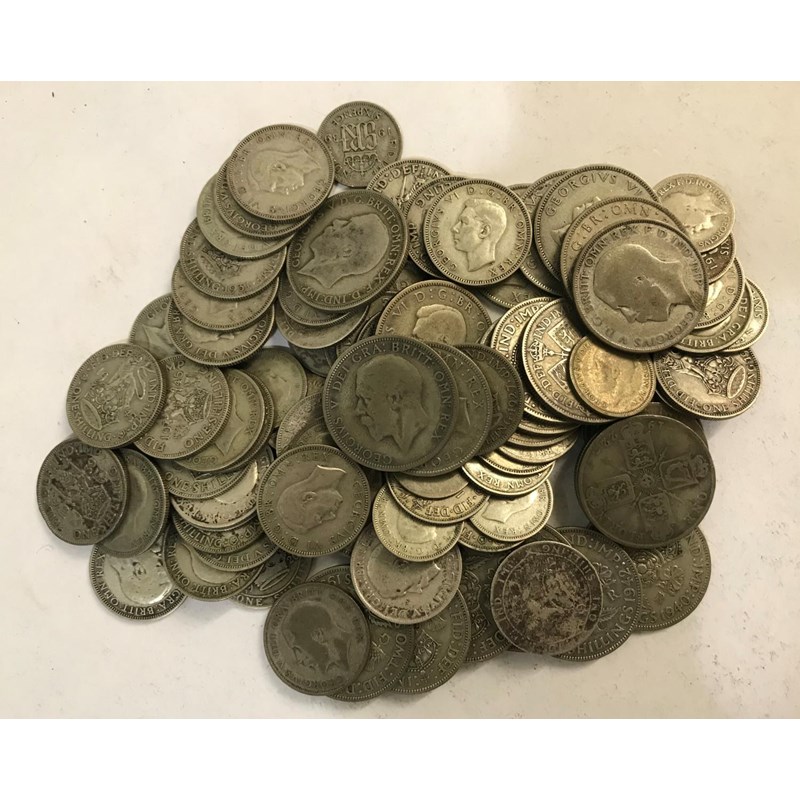 A COLLECTION OF PART-SILVER COINS. A collection of coins comprising 22 florins, 50 shillings and 15 sixpence pieces, all 1946 or earlier and 22 mixed threepence pieces..