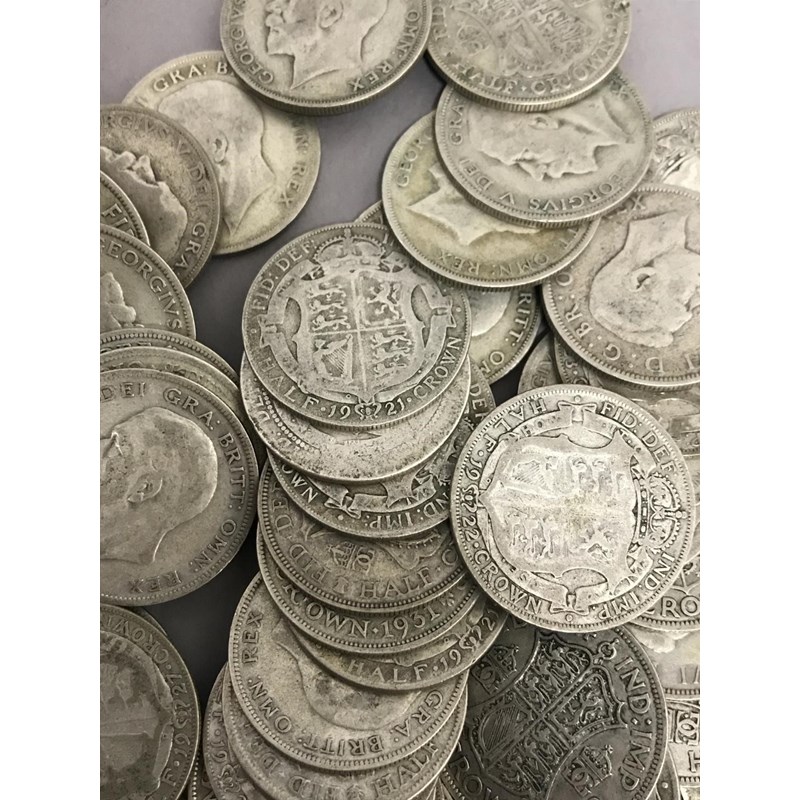 A LARGE COLLECTION OF PART SILVER HALFCROWNS. A collection of part silver Halfcrowns, George V and George VI 1920-1946. Approximately 148 coins.