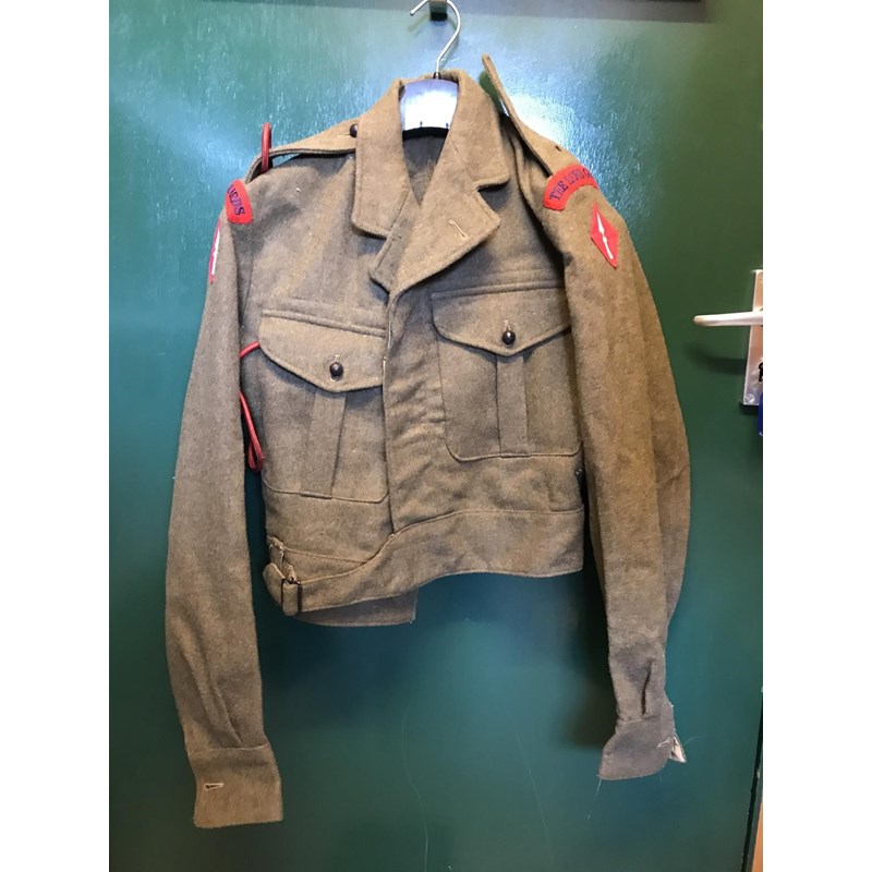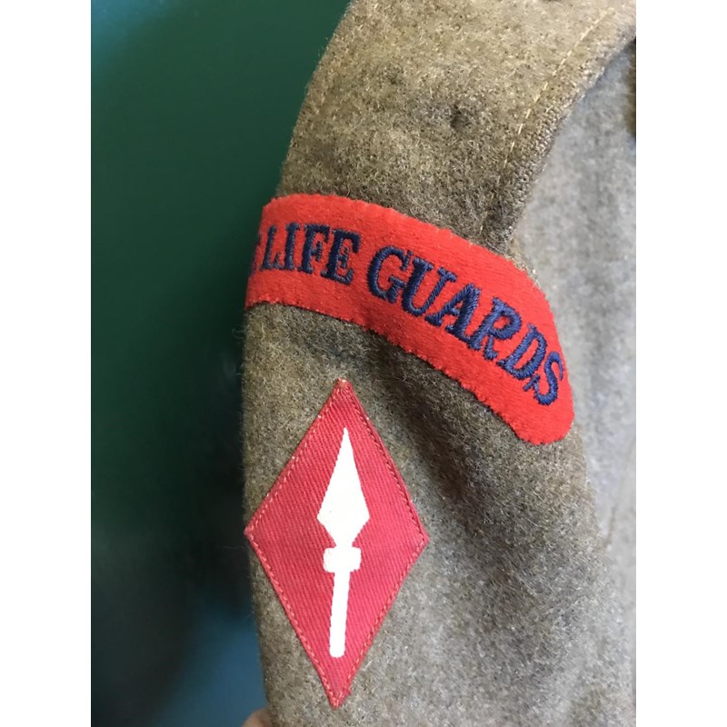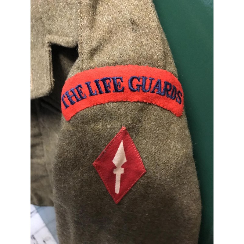 The uniforms comprising Battledress including a 1949 Pattern Blouse size 13, by H.Edgard and Sons, 1955, similar pattern trousers, size 13 by Mourne Clothing 1956 and a further blouse by G.R.Black 1955, all with Life Guards shoulder badges and No.1 Corps formation badges. Service Dress comprising jacket and trousers by Huntsman and Sons of Saville Row, Blues by the same tailor. The No.1 Corps was reformed in B.A.O.R. in 1951 at which date the Corps Sign of a white Spearhead on a scarlet diamond was readopted.
