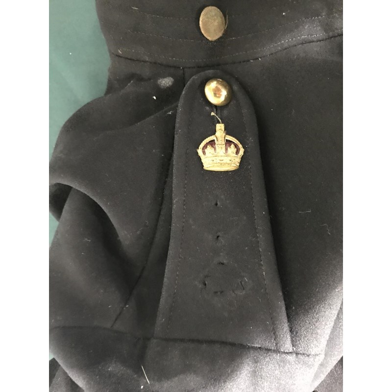 A heavy dark blue and red lined cloak, with crowns to the epaulettes, all other insignia removed and a similar smock type garment with decorated cuffs and collar with red backing for epaulettes. (2)