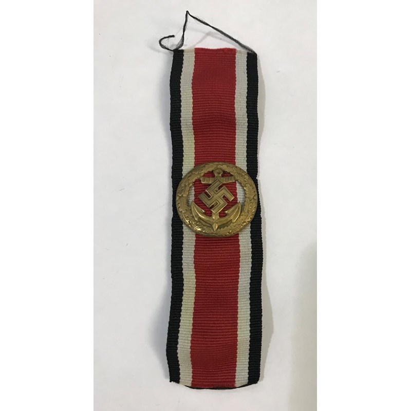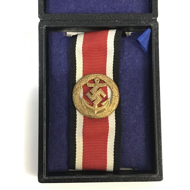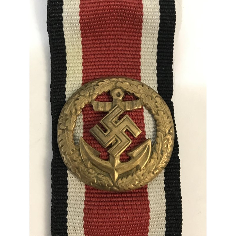 A gilt circular award with a naval anchor with central swastika within an oak leaf wreath, mounted on red, white and black ribbon, 24mm, in replica box.