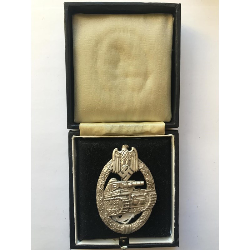 A SILVER TANK BATTLE BADGE.