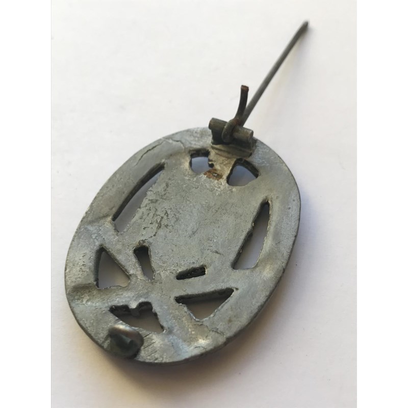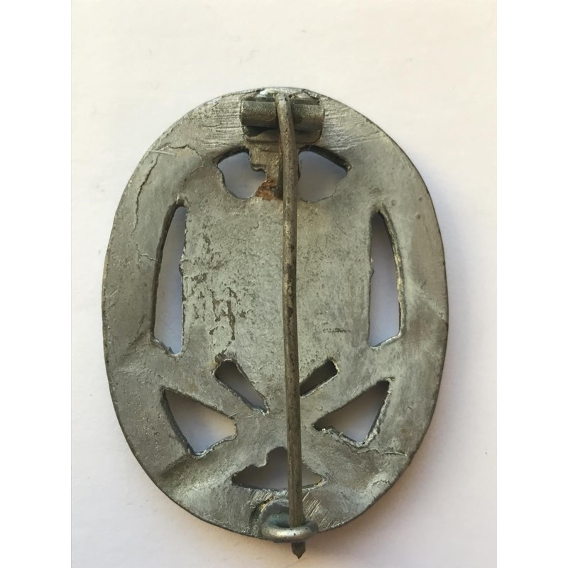A Second World War or later German Assault Badge with an army eagle with wings displayed holding a swastika in its claws, above a crossed bayonet and grenade, within an oak wreath, one piece construction with round pin. 55x41 mm. In replica case.