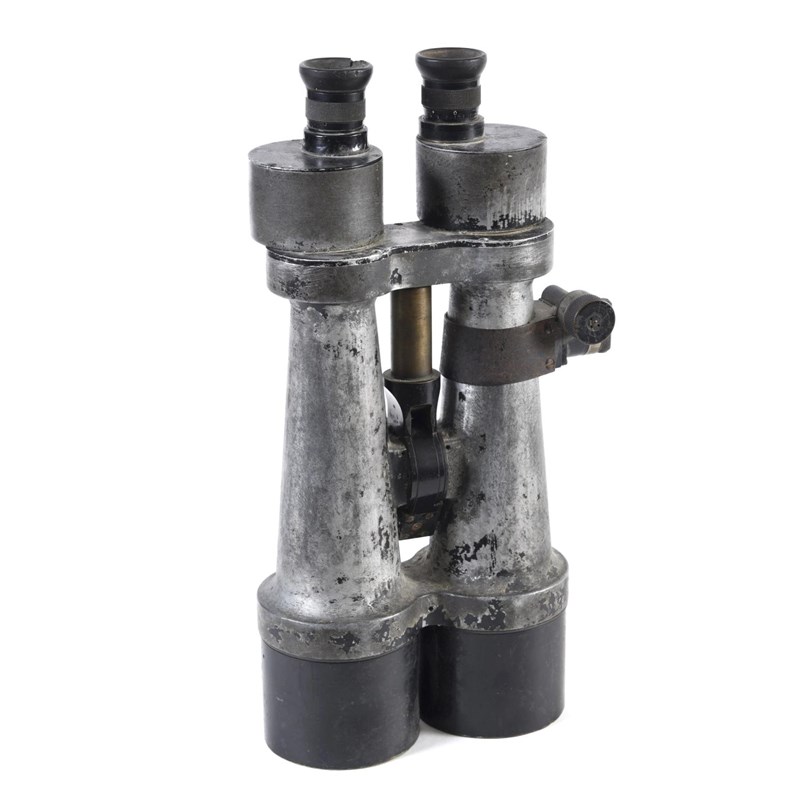 A pair of binoculars by Carl Zeiss, Wein, indistinctly marked, probably M812Z Fachmit Skala Doppelfernrohr, Nr. 553260' with extendable lens shades, retractable centre post mounting point, adjustable spirit level to one side. 37cm maximum length.