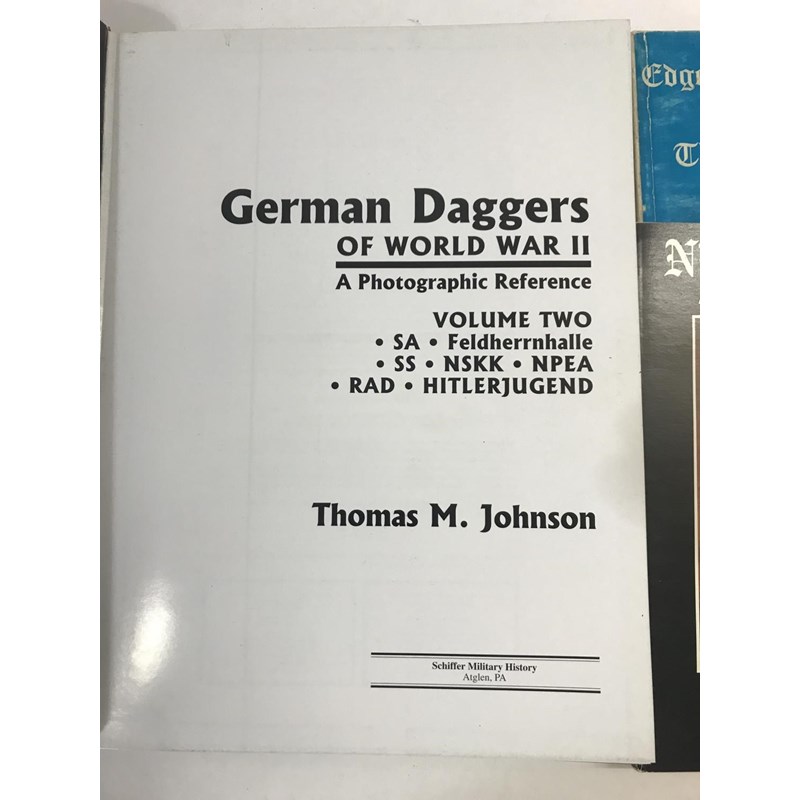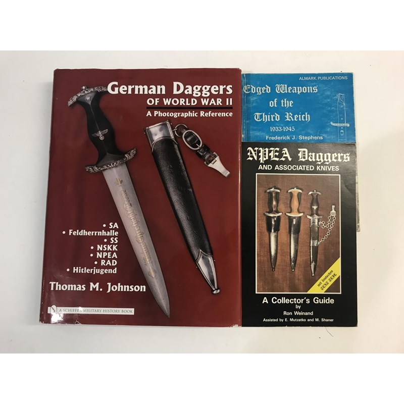 Three volumes on German second world war daggers: German Daggers of World War II, volume II, by Thomas Johnson, Schiffer, 2005. Edged Weapons of the Third Reich by Frederick Stephens and NPEA Daggers by Ron Weinand. (3)
