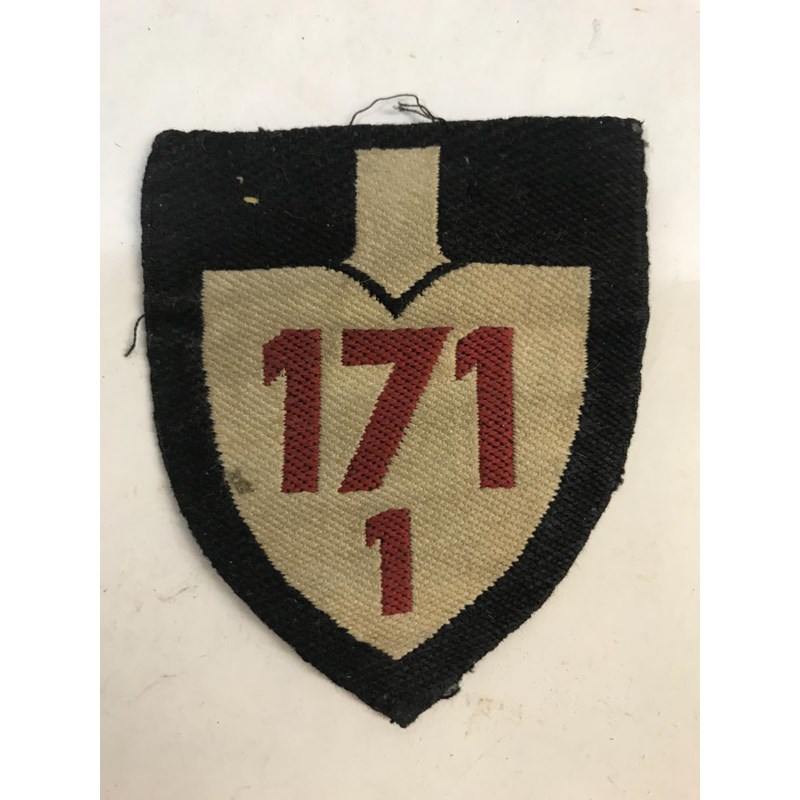 A GERMAN REICHSARBEITSDIENT ARM BADGE. A German Labour Service arm badge the shovel blade numbered 171 1. marked to the reverse Ges Gesch, 7.5x6 cm. This item is Second World War or later and sold not subject to return.